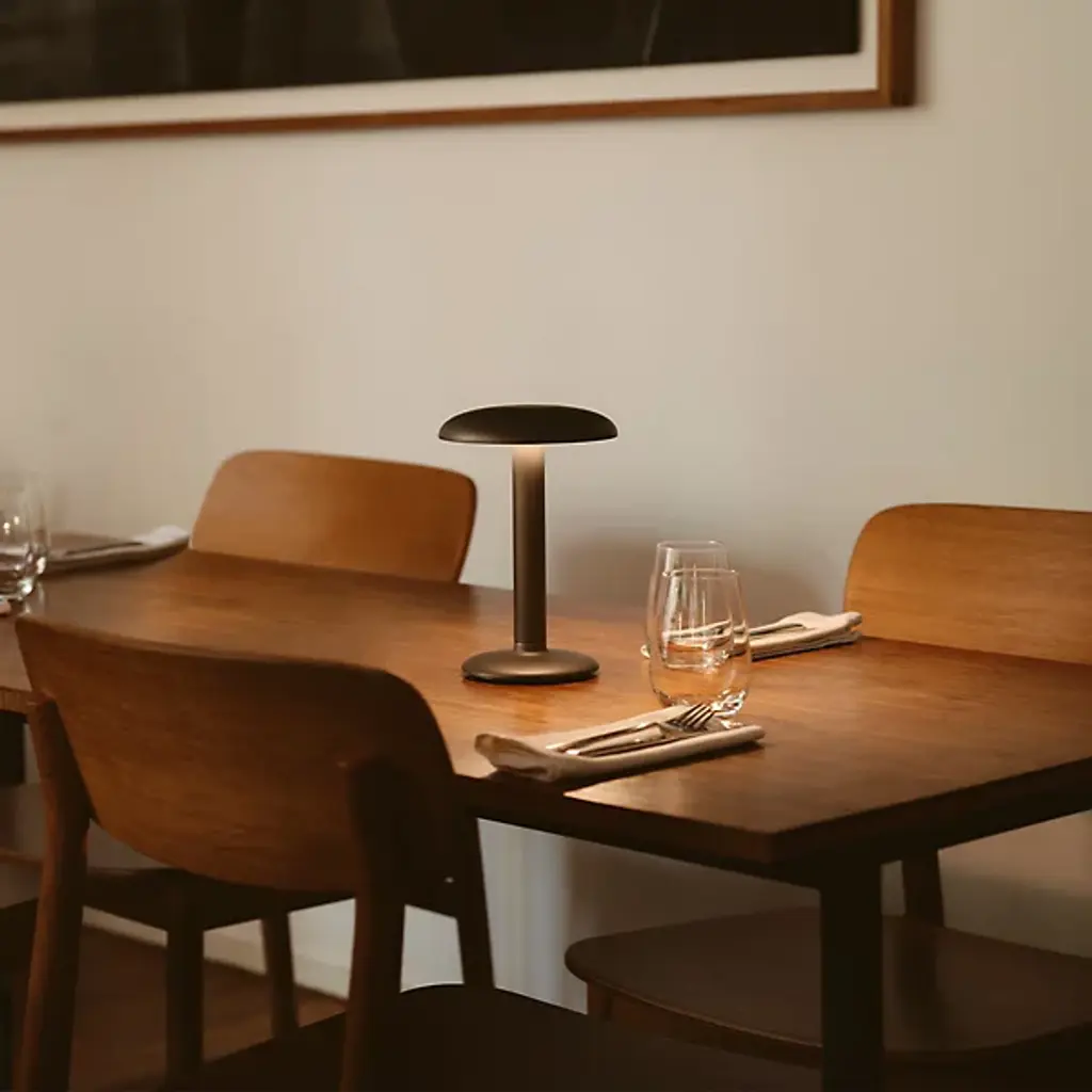 The Gustave Rechargeable LED Table Lamp from FLOS is a versatile, eye-comforting piece designed to satisfy during tasks, dining, or relaxing times alike. Creator Vincent Van Duysen’s pieces aim for timelessness by putting functionality, durability, and comfort first. Here, minimalist yet durable shapes create a quiet silhouette that complements the surrounding décor. Charming like a button, its round head features a Gustave optical system that helps disperse LED light a uniform 360 degrees below. This elegant cast light can be taken anywhere thanks to its battery power source. The piece offers up to 18 hours of autonomous lighting at certain dimming levels.