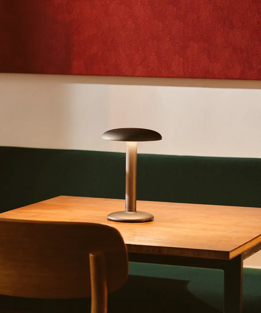 Thanks to the particular lighting diffusion technology, the table rechargeable lamp perfectly lights up a wide surface stretching up to a meter. Powered by batteries (included inside the product). Charging by USB-C cable, included. Sequential dimming 0-100%. Gustave is the first luminaire to incorporate a system of exclusive, patented by Flos, asymmetrical emission lenses, arranged in revolution and spanning 360º around the position of the lamp. This authentic design is produced in Italy exclusively by Flos.