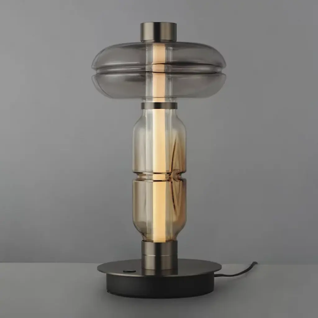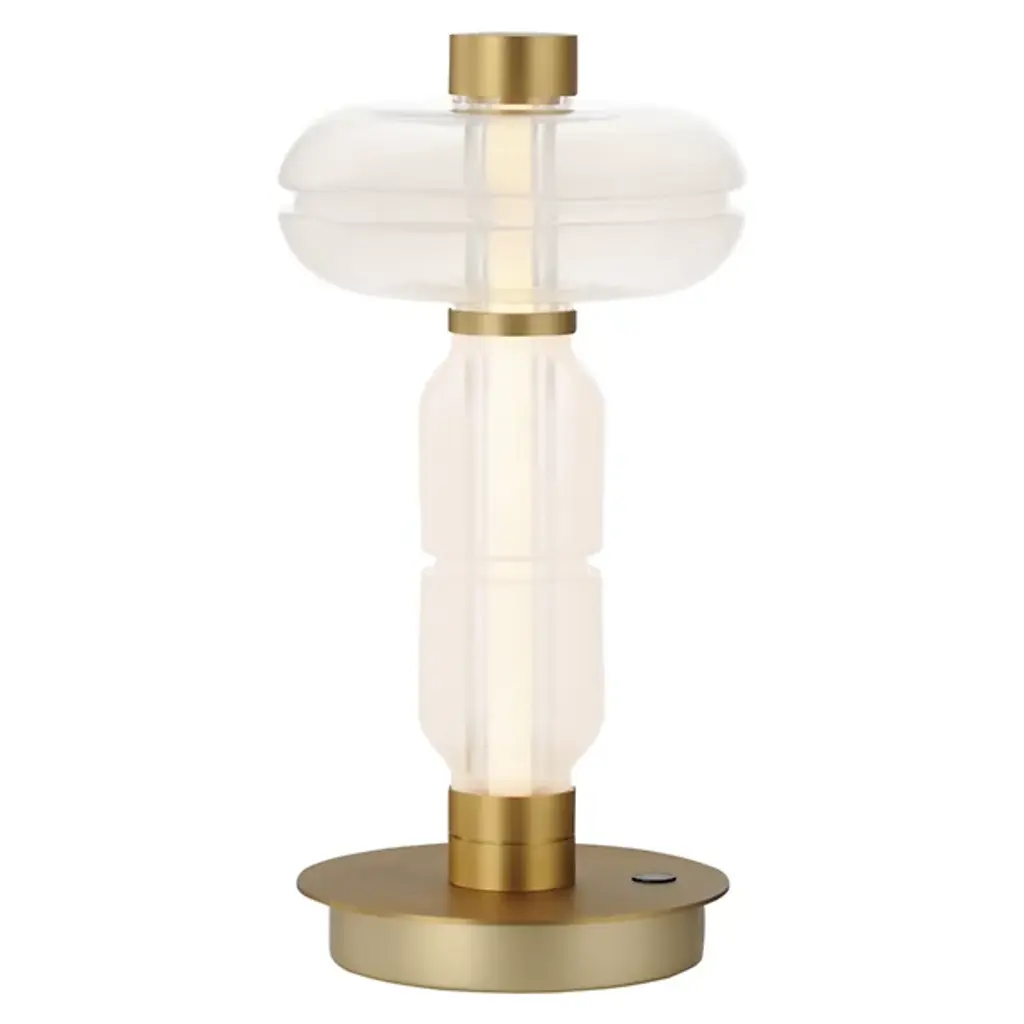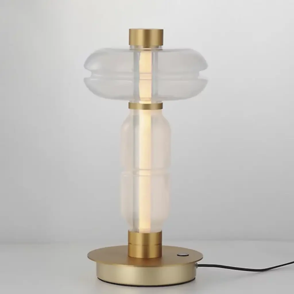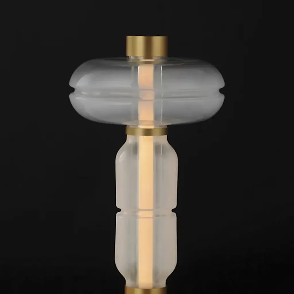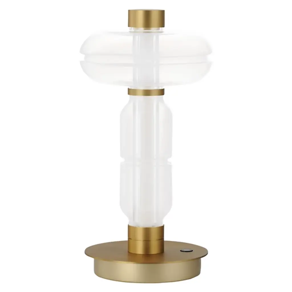 With a retro-futuristic flair and a burst of Gusto, the Gusto LED Table Lamp from Studio M introduces artisanal hand-blown glass elements, embracing cloud-like hues and color gradients. A harmonious blend of Transitional and Artisanal Modern styles designed by Cesar Giraldo, each glass piece, meticulously crafted with dimpled accent bands, refracts dedicated LED lighting, casting an enchanting glow that dances along the undulating silhouette of the fixture. The lamping itself is encased within a thin tube of white acrylic, nestled within a larger layer of clear glass, creating an airy composition that exudes a sense of weightlessness while generously illuminating its surroundings.