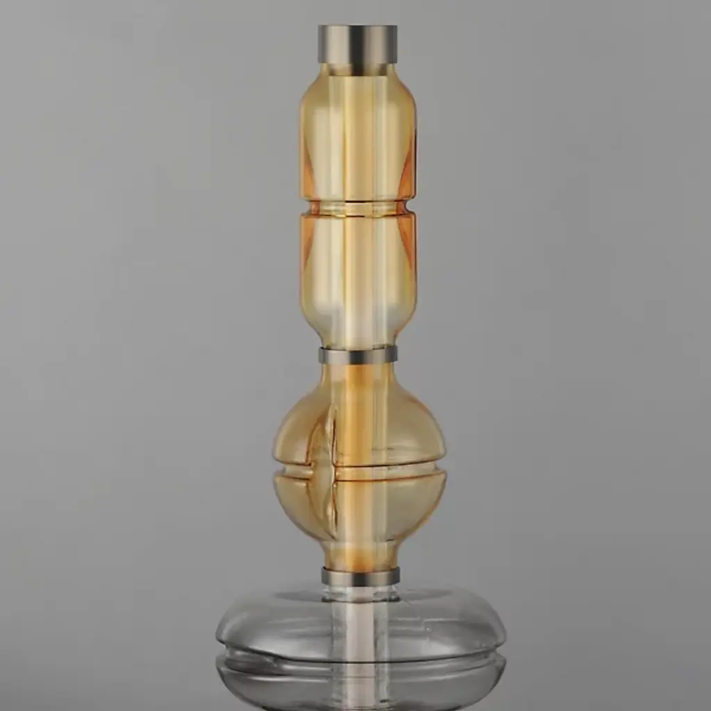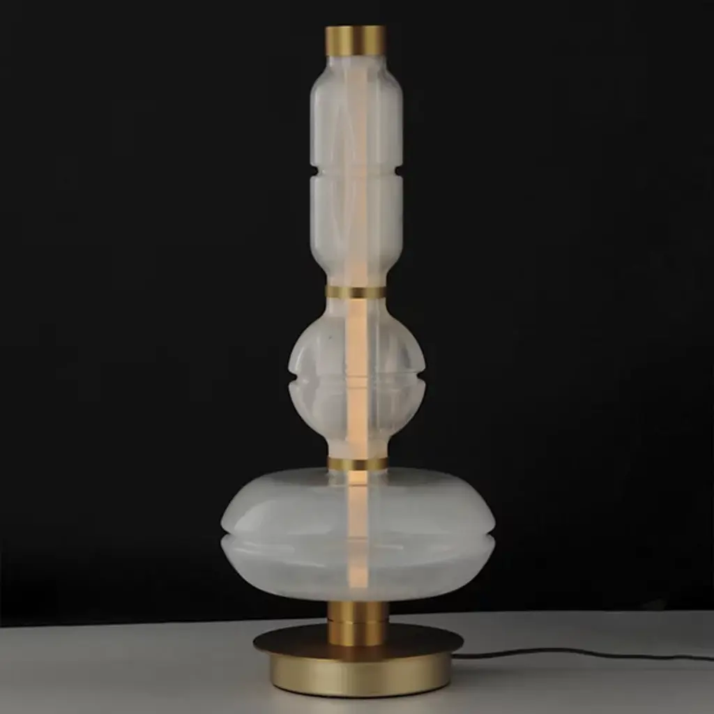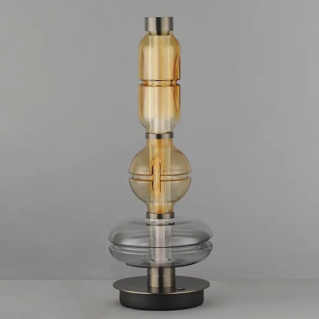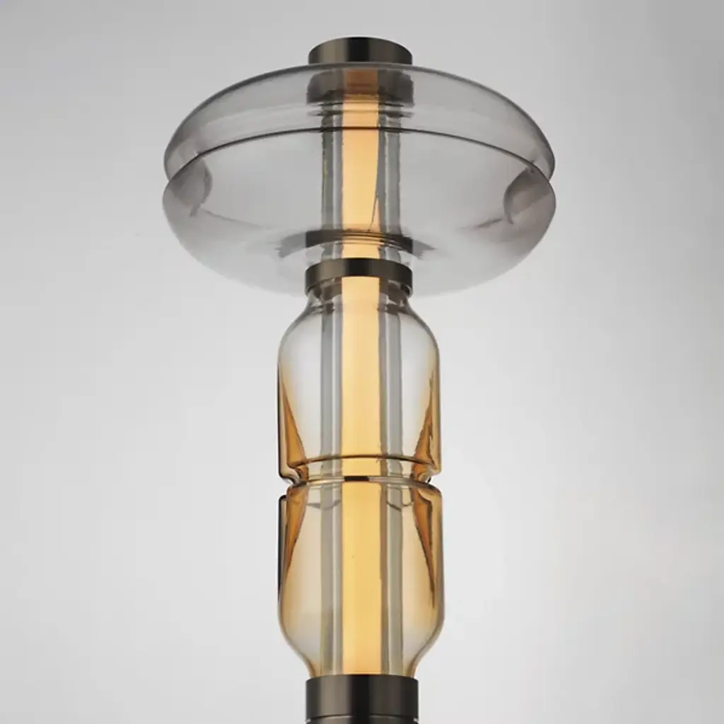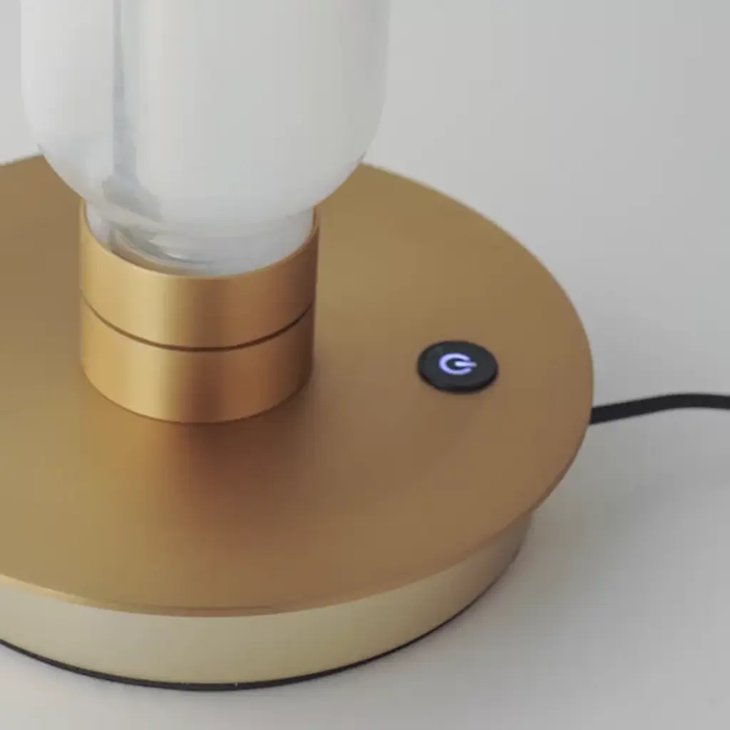 With a retro-futuristic flair and a burst of Gusto, the Gusto LED Table Lamp from Studio M introduces artisanal hand-blown glass elements, embracing cloud-like hues and color gradients. A harmonious blend of Transitional and Artisanal Modern styles designed by Cesar Giraldo, each glass piece, meticulously crafted with dimpled accent bands, refracts dedicated LED lighting, casting an enchanting glow that dances along the undulating silhouette of the fixture. The lamping itself is encased within a thin tube of white acrylic, nestled within a larger layer of clear glass, creating an airy composition that exudes a sense of weightlessness while generously illuminating its surroundings.