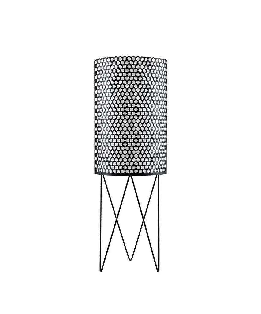 An icon of mid-century modernism, originally designed for Gaudi's La Pedrera building in Barcelona. In 1955, Barba Corsini renovated the loft space within Antonio Gaudi's famed "La Pedrera" building - transforming it from a storage facility into 13 beautifully-designed apartments. To complement the modernist architecture, Corsini custom-designed furniture for the space, including the now iconic Pedrera lamps and table. He leaned on Gaudi's architectural designs for inspiration - the base of the lamp inspired by the building's vaulted ceilings and the lamp shade referencing its chimneys. Designer Joaquim Ruiz Millet, a protege of Corsini, later designed this lamp in collaboration with his mentor. The lamp is made from powder-coated, perforated metal and is produced in Denmark by Gubi - a Copenhagen-based purveyor of historic and contemporary designs. This is a certified authentic design, produced to the designers' original specifications.