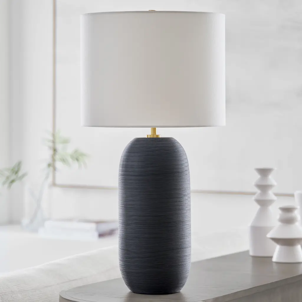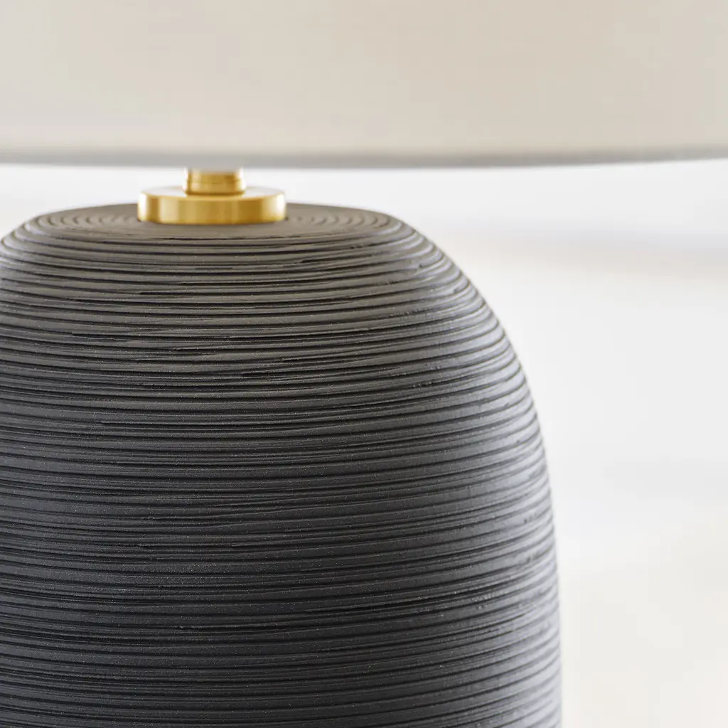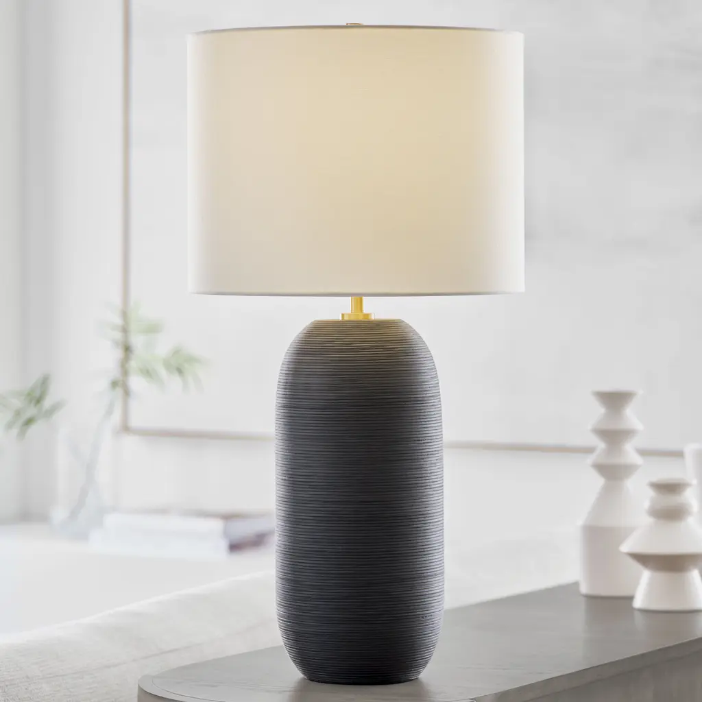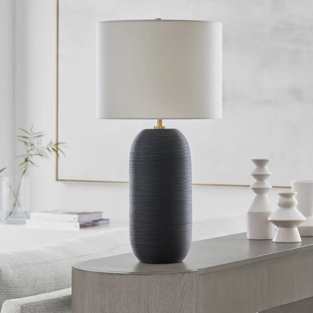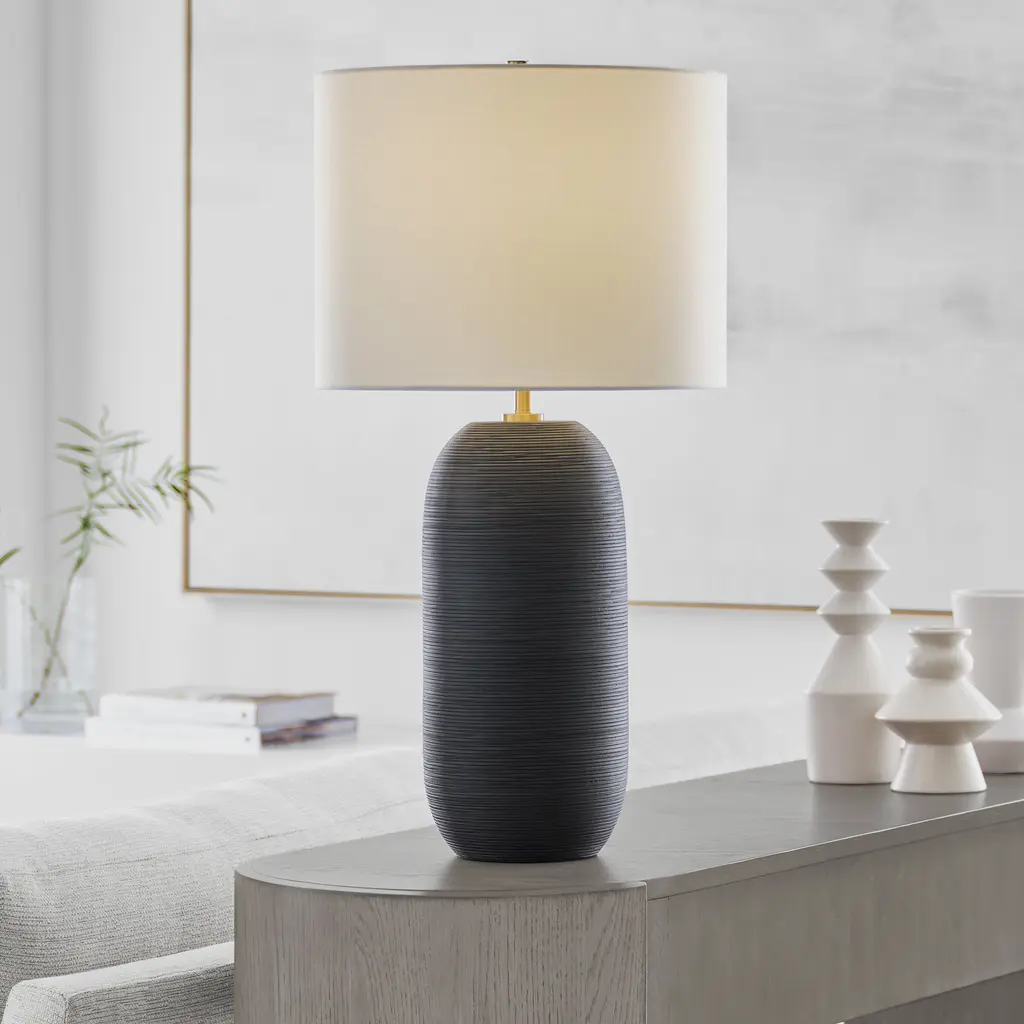 Clean lines and elemental materials lend an iconic quality to the Fanny table lamp by Hable. Available in a slim and wide design. The Fanny one-light table lamp in Rough Black Ceramic supplies ample lighting for your daily needs while adding a layer of today's style to your home's décor.