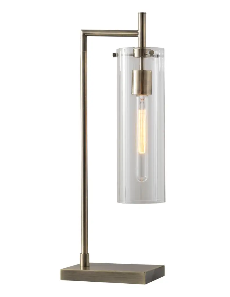 Table Lamp, Bn/Clear Glass Shade, E27 Vintage T30 40W