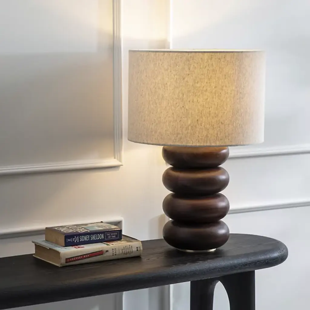 The Haldane Table Lamp from Alder & Ore showcases the rich beauty of natural materials. Its wooden base reveals a deep, lustrous grain with every curved portion, while the natural linen shade creates s contrast of textures – smooth wood and rough fabric. The antique brass accents wrap this design up nicely, complementing the fixture’s natural tones while providing an air of refinement and luxury. With its adjustable dimmer, you can also create the perfect atmosphere for any moment, whether illuminating a reading nook or gracing a side table.