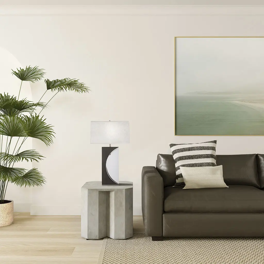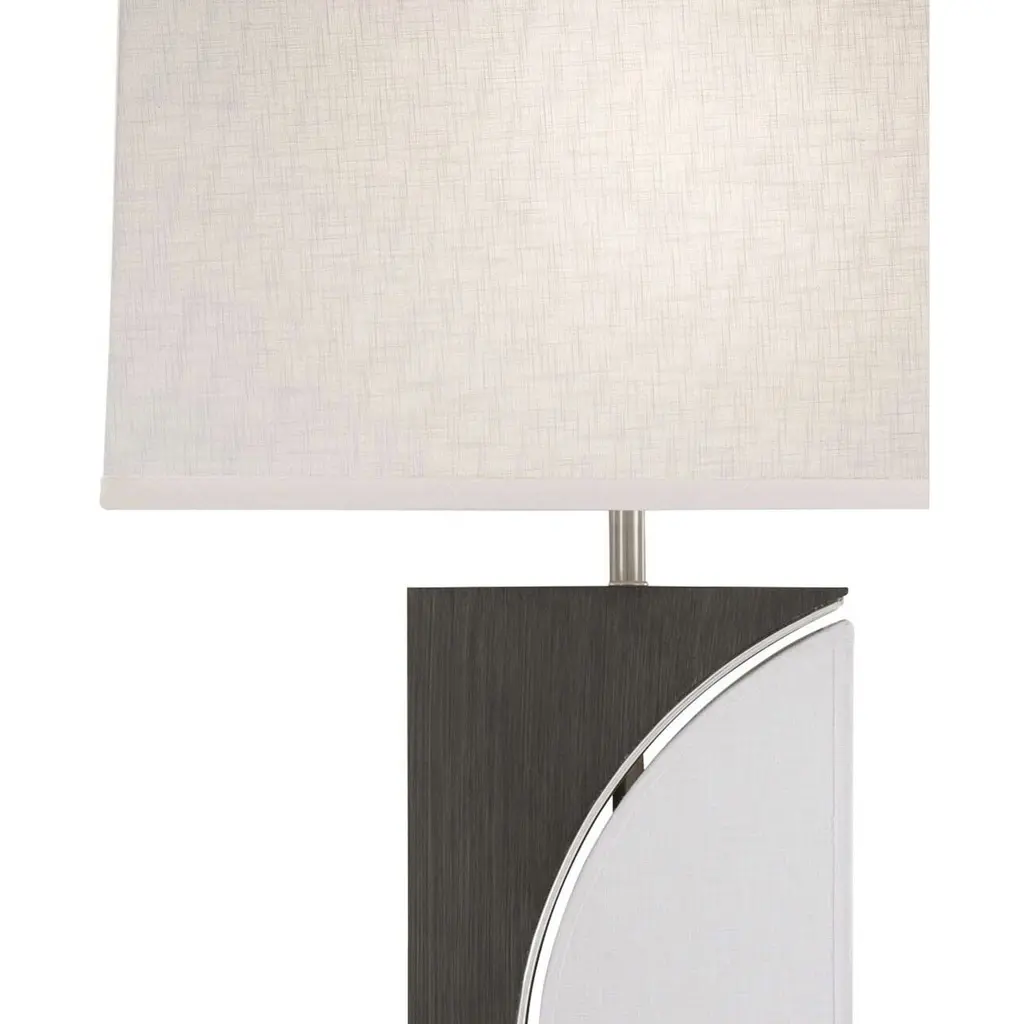A must-have for the transitional living space, this chic table lamp is made with real wood contrasting ash gray with a white half-moon. Smartly balanced by a rectangle linen shade for functionality on your table or desk. Like Our Magnificent Satellite Blazing High in the Night Sky, the Breathtaking Half Moon Table Lamp Shines Like a Flame in the Darkness. These Modern Table Lamps for the Living Room or Bedroom are Designed to Radiate Their Glory Throughout any Fashionable Setting. Each Metal and Wood Table Lamp Measures 18"W x 9" D x 30"H, Weighs 8 Lbs, and is Controlled Using a 4-Way Rotary Switch With a 100W Bulb & 25W Candelabra Night Light. Shade: White Linen, (8" X 17") X (9" X 18") X 10"V
