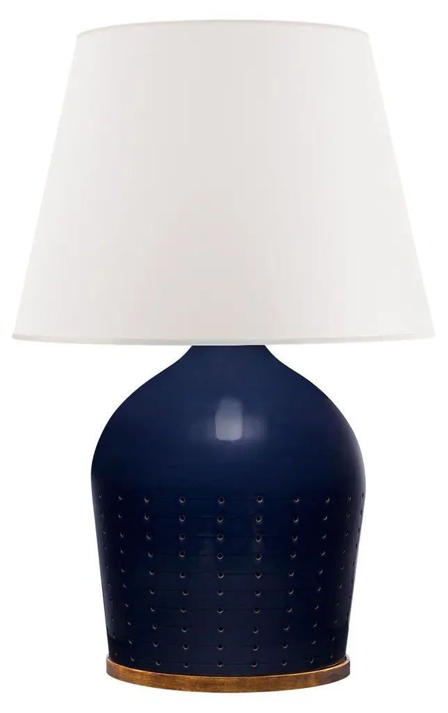 This table lamp feels simple yet impactful in perforated ceramic with a double-layer shade.