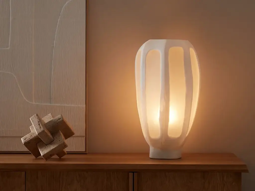 The HALKIDE hexagonal glass lamp has an astonishing matte surface as if coated with lime, revealing its frosty texture like a pattern carved in the rock. It diffuses a soft and warm ambient light. The opaque glass is mass-dyed. Handcrafted, HALKIDE is a unique contemporary and sculptural piece.Product Details:Hexagonal lamp in frosted and opaque white glassSolid colourSocket for E27/60W max bulb (not supplied)Compatible with energy class bulbs: AWhite plastic electric cable