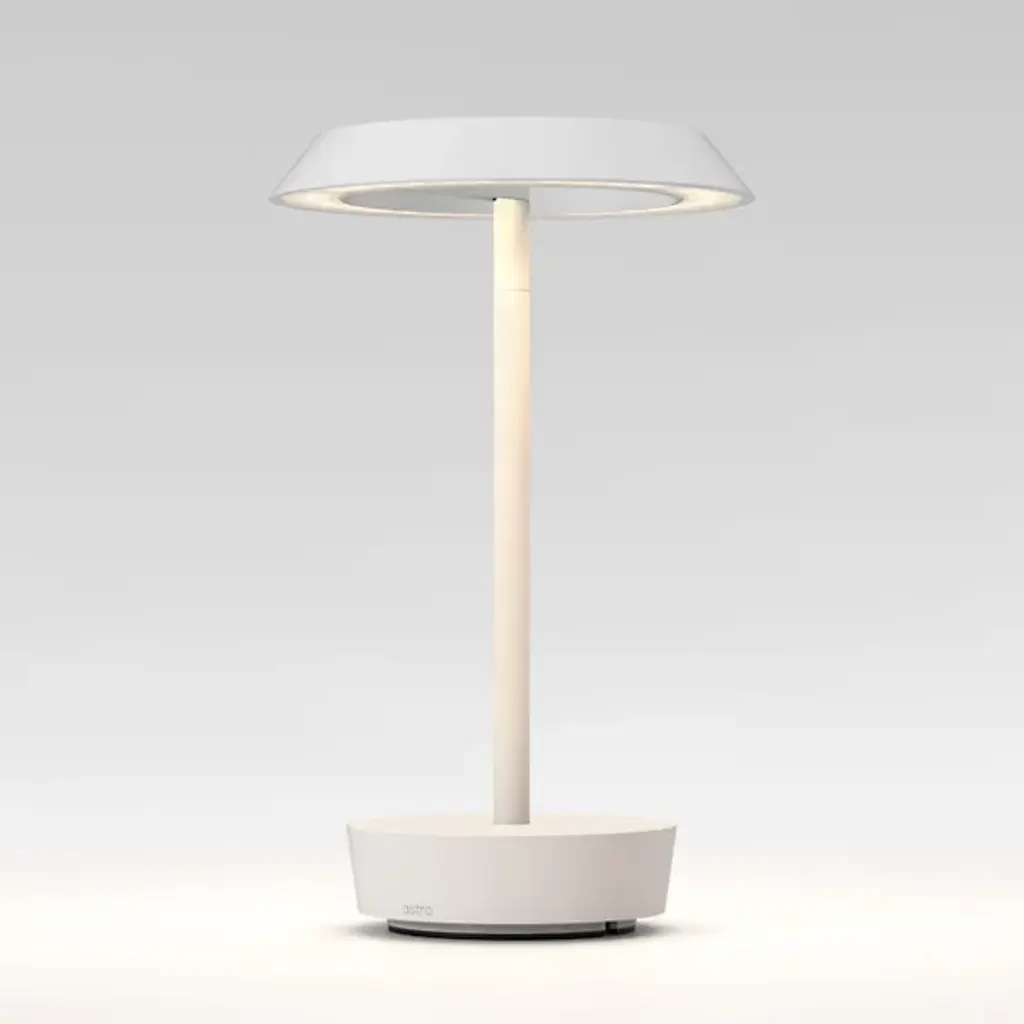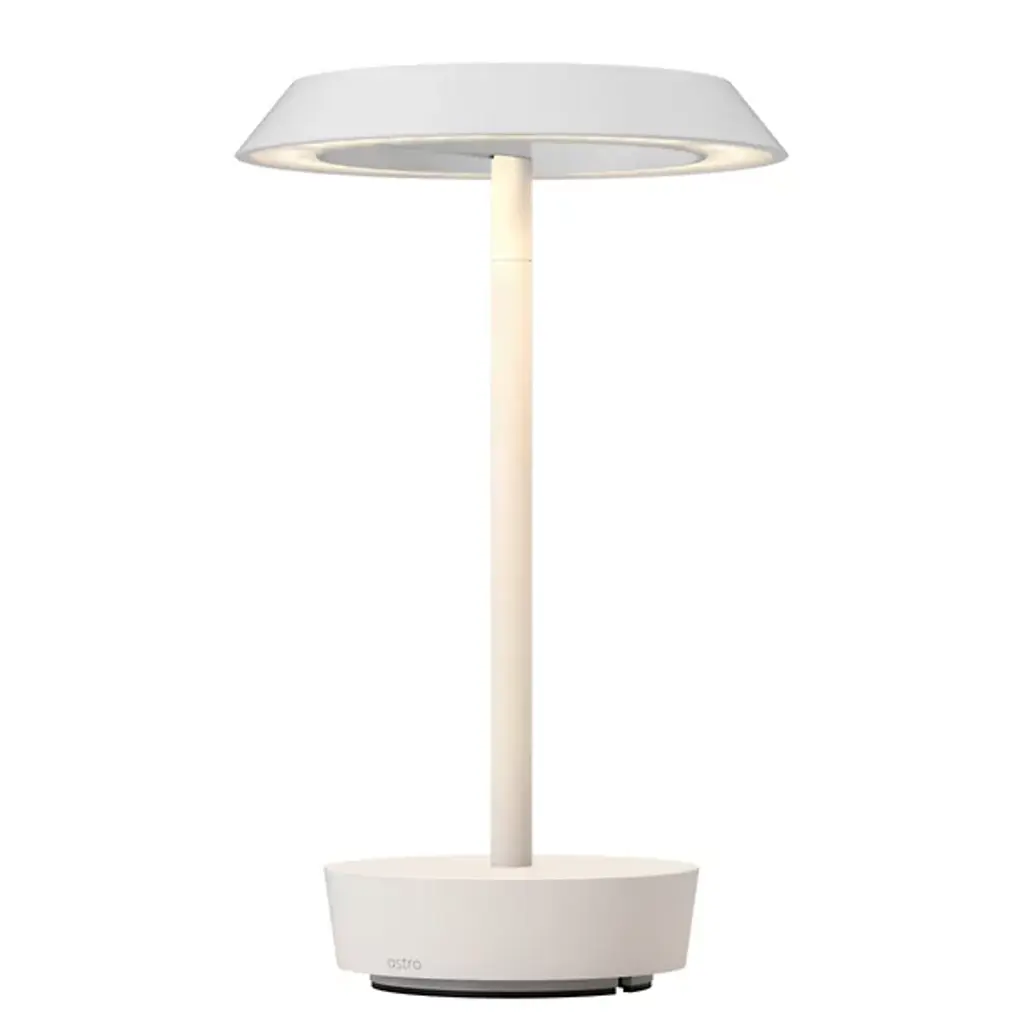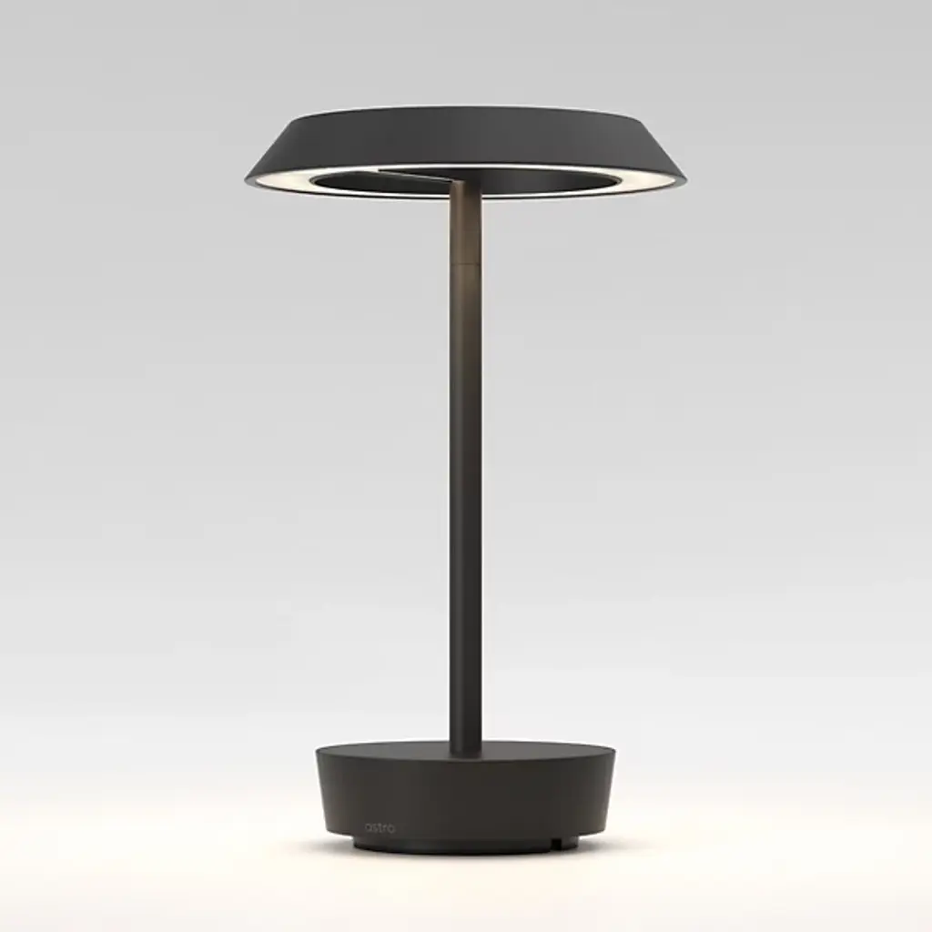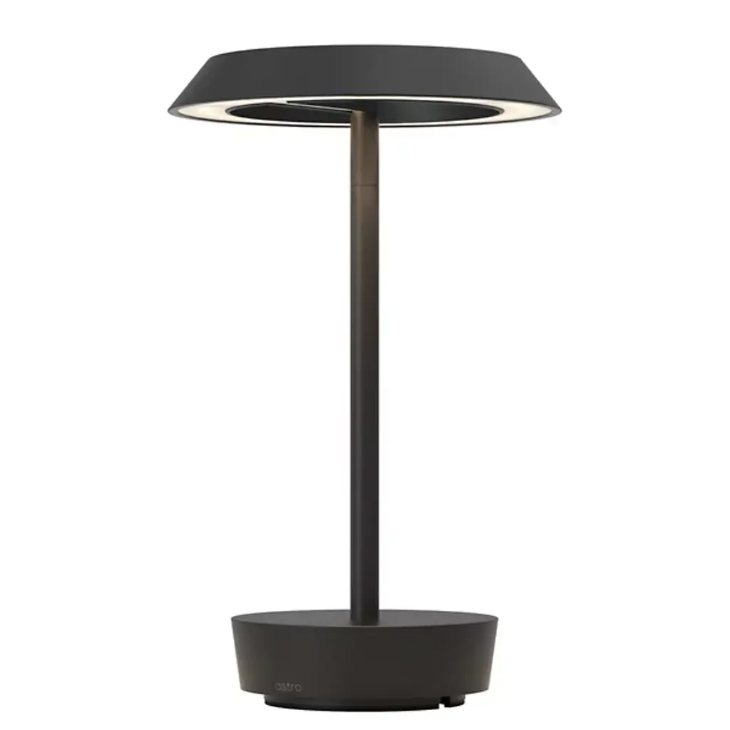 The Halo Rechargeable LED Table Lamp from Astro Lighting is a fusion of modern design and practicality. The streamlined framework boasts an open crown, creating a contemporary aesthetic. Halo is balanced by a sturdy baseplate. Crafted from aluminum, it emanates a warm glow through its integrated LED. Designed for convenience, this lamp features a USB-C charging capability for portable use, allowing you to move it effortlessly to different areas of your home. The base touch dimmer lets you adjust the brightness level.