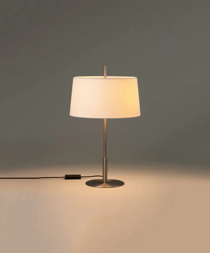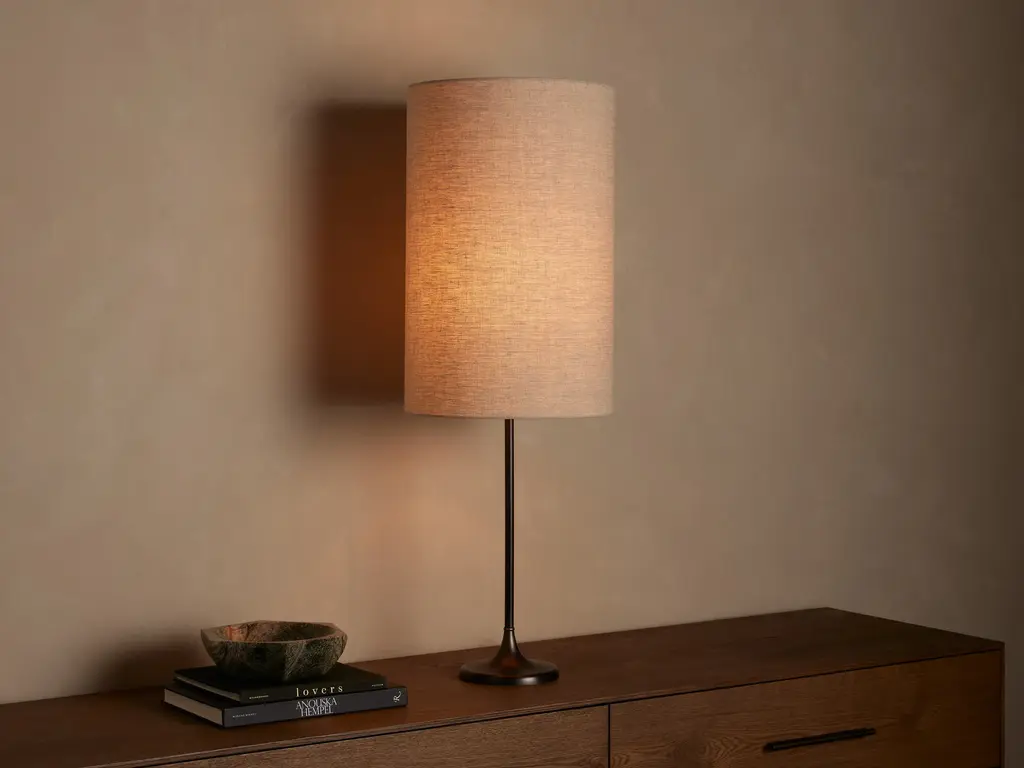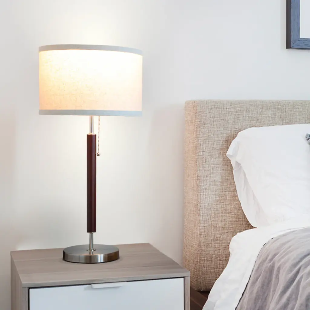 Introduce the stunning and ultra sophisticated Hamptons Table Lamp into your modern or transitional dcor for an instant style upgrade. High quality materials blend with a sleek, contemporary design to deliver a unique spin on the traditional table lamp. The elegant 8 round base and lamp pole boast a rich walnut finish, which beautifully contrasts against the variegated beige linen fabric lampshade. Make a subtle style statement with the delightful Hamptons Table Lamp.Outer Shade: 8"diameter x 18"h Inner Shade: 6"diameter x 17"h