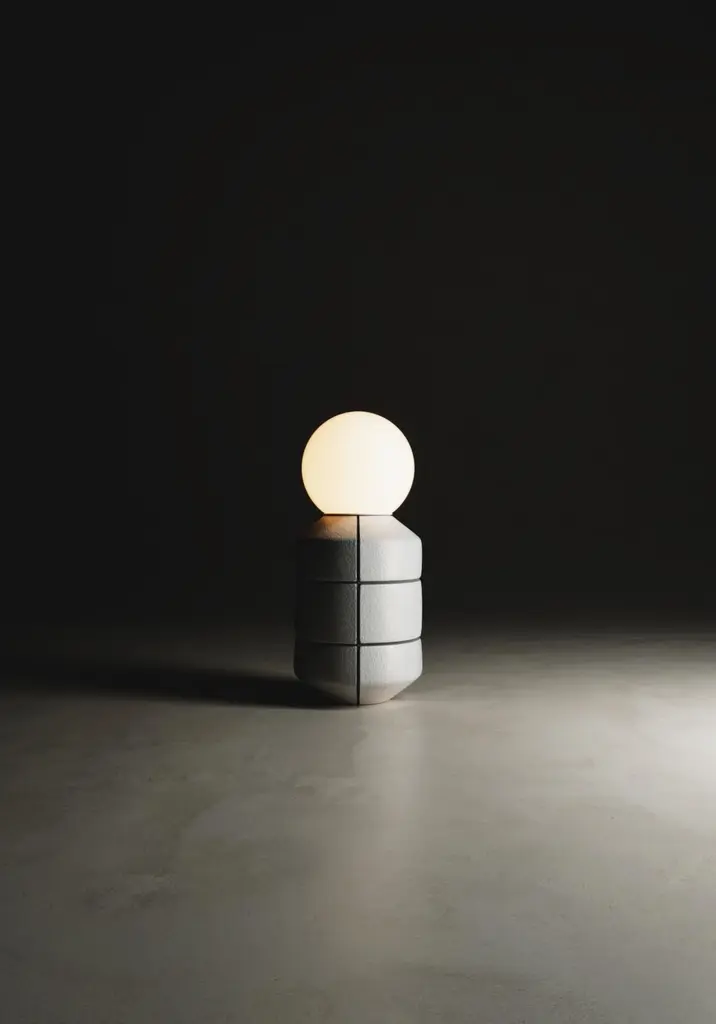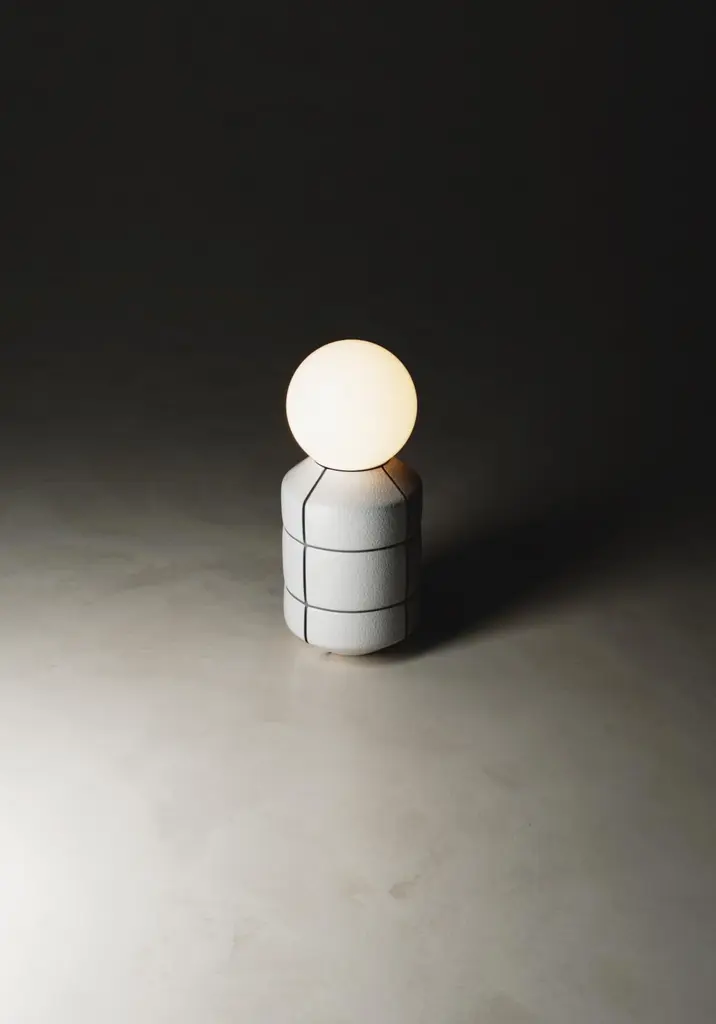 Handcrafted White Navazi Lamp Ceramic Pottery Table Illumination Lighting