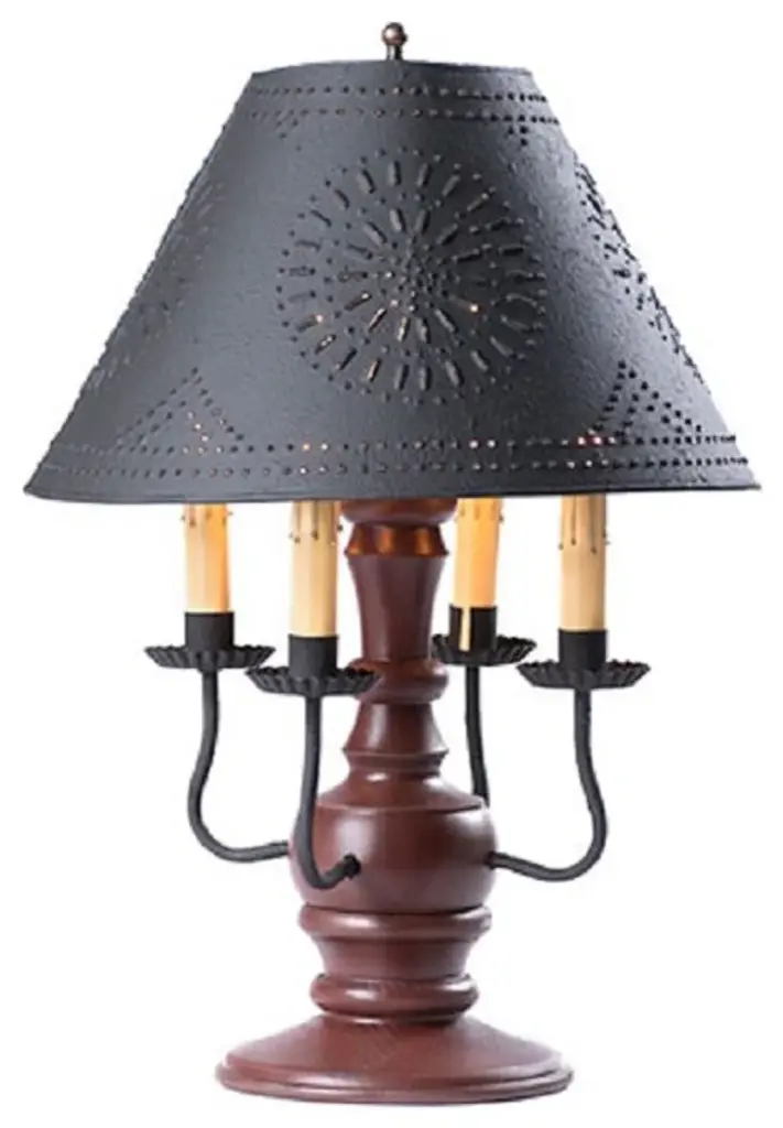 Handcrafted Wood Table Lamp Cedar Creek With Punched Tin Shade, Sturbridge Red