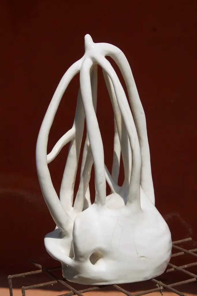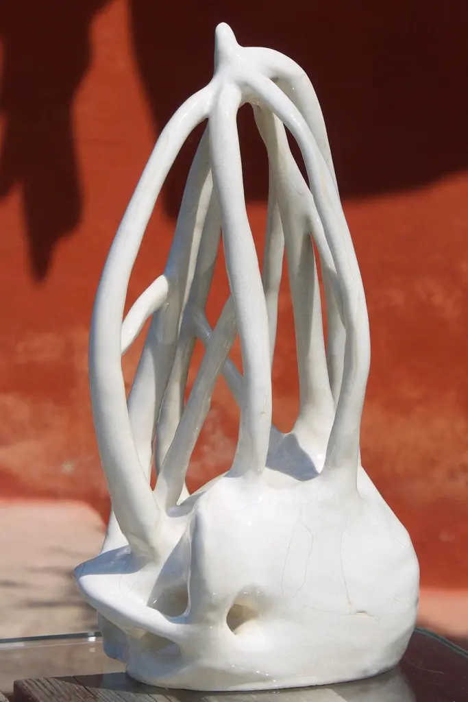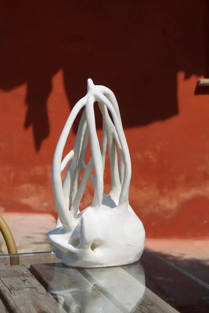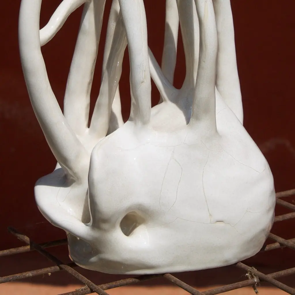 Handmade IOS C. Structure by Le MeduseUnique pieceDimensions: W 18, D 18, H 35 cmMaterials: Glazed ceramic.Each model is unique because it is handmade, it can be reproduced in a similar but not identical way. Request customization. Each model is part of a limited edition collection.I investigated the bone structures a wonderful microcosm revealing the amazing harmony hidden in the small, sometimes invisible natural forms.These structures have always been considered the element that most tells the story of a people and their settlement. This magnificent spongy structure is a work of art of nature which I interpreted with two different materials such as plaster and ceramic.I am the son of the economic boom of the 1960s and since I was a child I was attracted to waste materials such as car demolitions and there was a strong desire to transform them into completely new objects such as tables, bookcases, lamps.I have always liked to experiment with any material from wood to ceramic, from iron to glass with my hands and find harmony in the shapes, try new processing techniques.This is how the Le Meduse project was born in 1993, light sculptures made only of waste glass and light, which travel around the world.My mantra is, to experiment and play with (possibly waste) materials and be inspired by the shapes, structures and colors of nature.True happiness comes from the enthusiasm to create new things.Antoine de Saint Exupery.