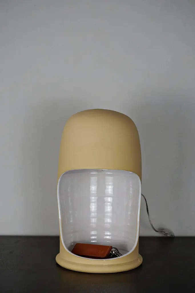 Table lamp hand - crafted with storage to leave keys, wallet etc tidy at home. The electrical connection of the lamp is suitable for both the American and European markets. The interior of the piece is vitrified in white to achieve a better use and projection of light (The bulb is not included). The material used is top quality stoneware and it is made by specialized artisans in the Galician town of Buño, a landmark for contemporary pottery, with hundreds of years old. We have some units of this lamp, and if it is available we will send it to you in 3 days.