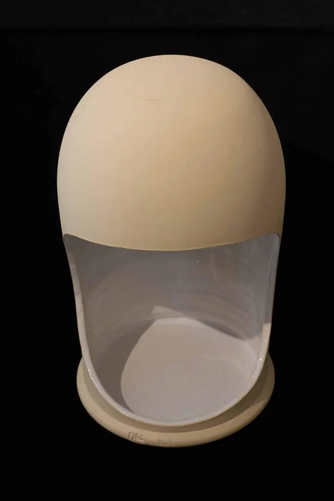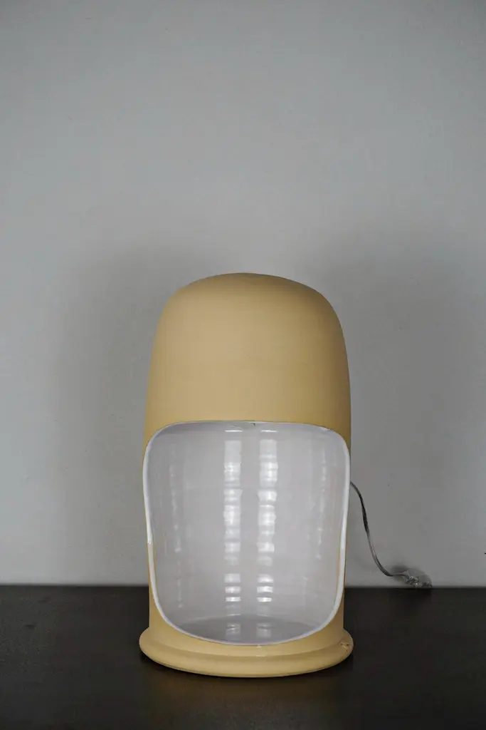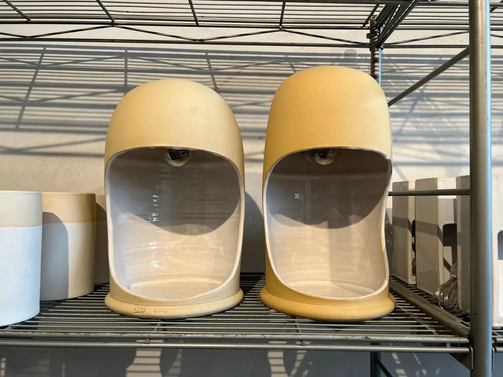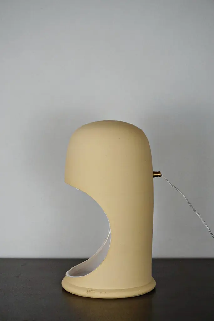 Handmade Table Side Pac-Man Lamp, Pocket Pick, Ceramic White/beige