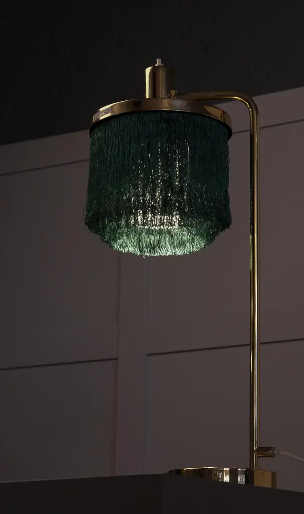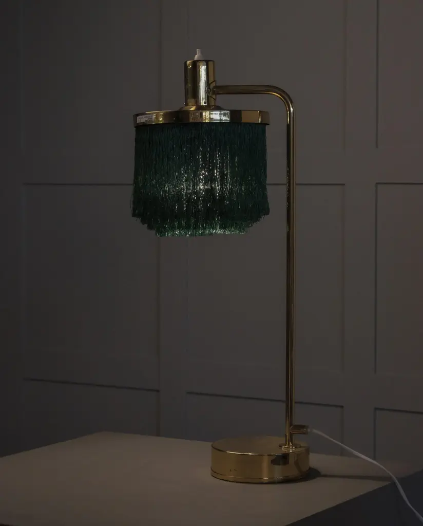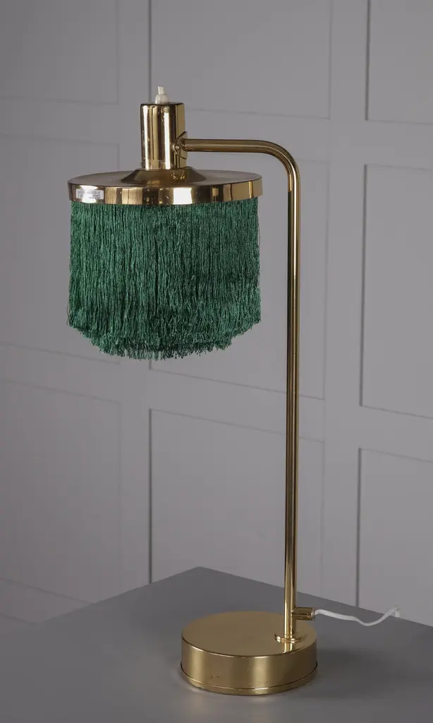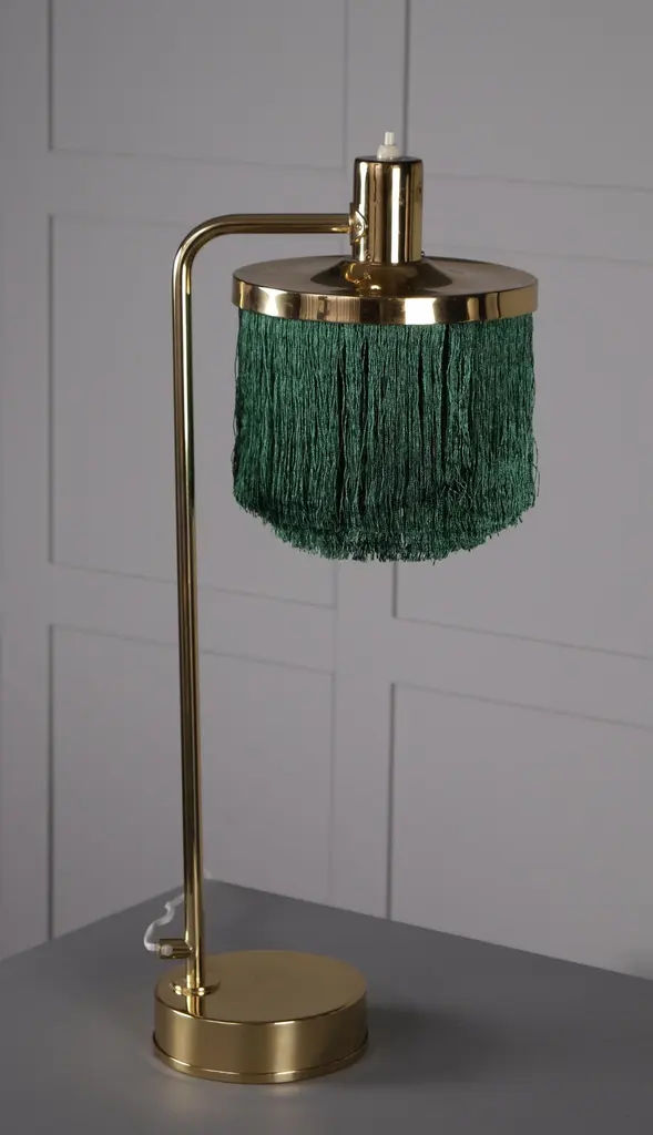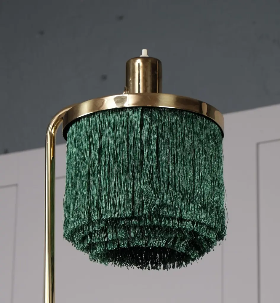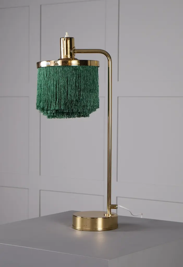 Rare green fringe table lamp produced by Hans-Agne Jakobsson in Markaryd, Sweden, 1960s. - Model B140- New wiring- 2 table lamps available, listed price is for a single.