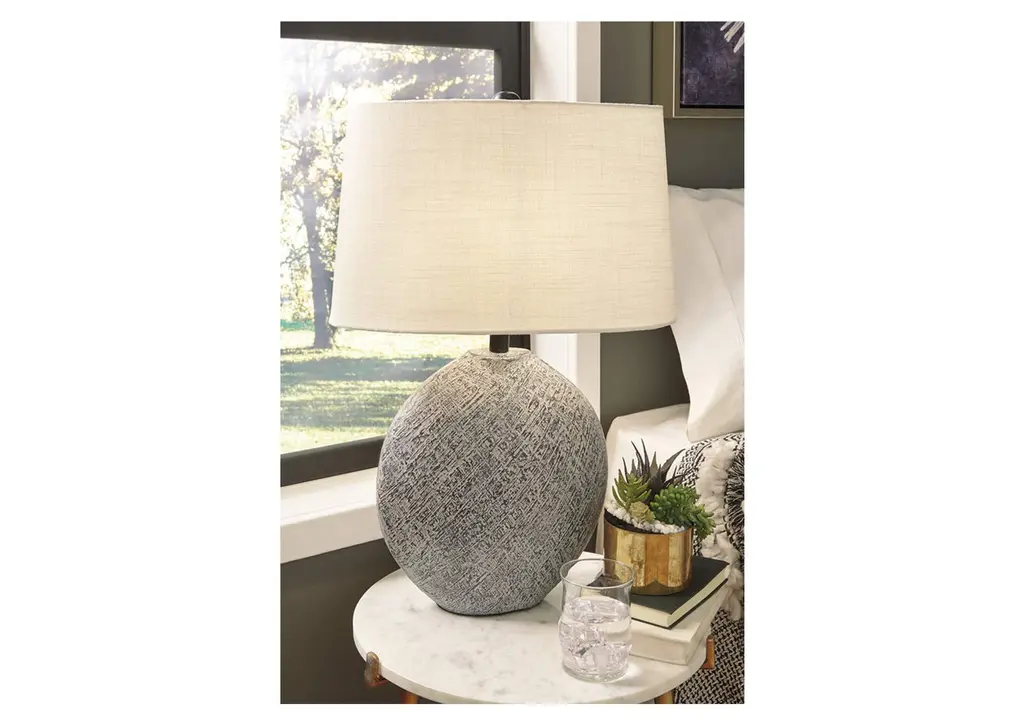 Add texture and interest to your room with the Harif table lamp. Made of paper composite, this lamp makes it easy to cut and paste design brilliance into your home decor. Weight 14.000 lbs. (6.3kgs.)
