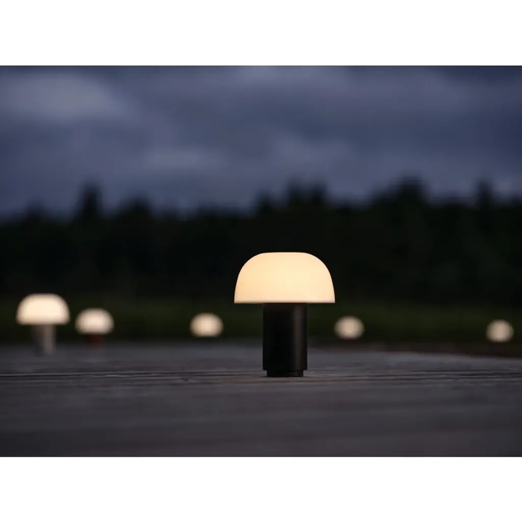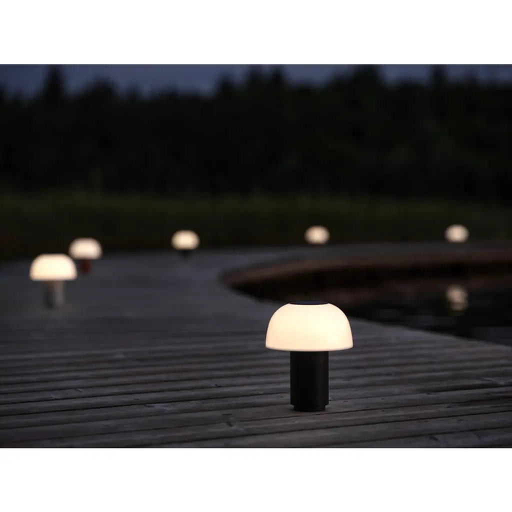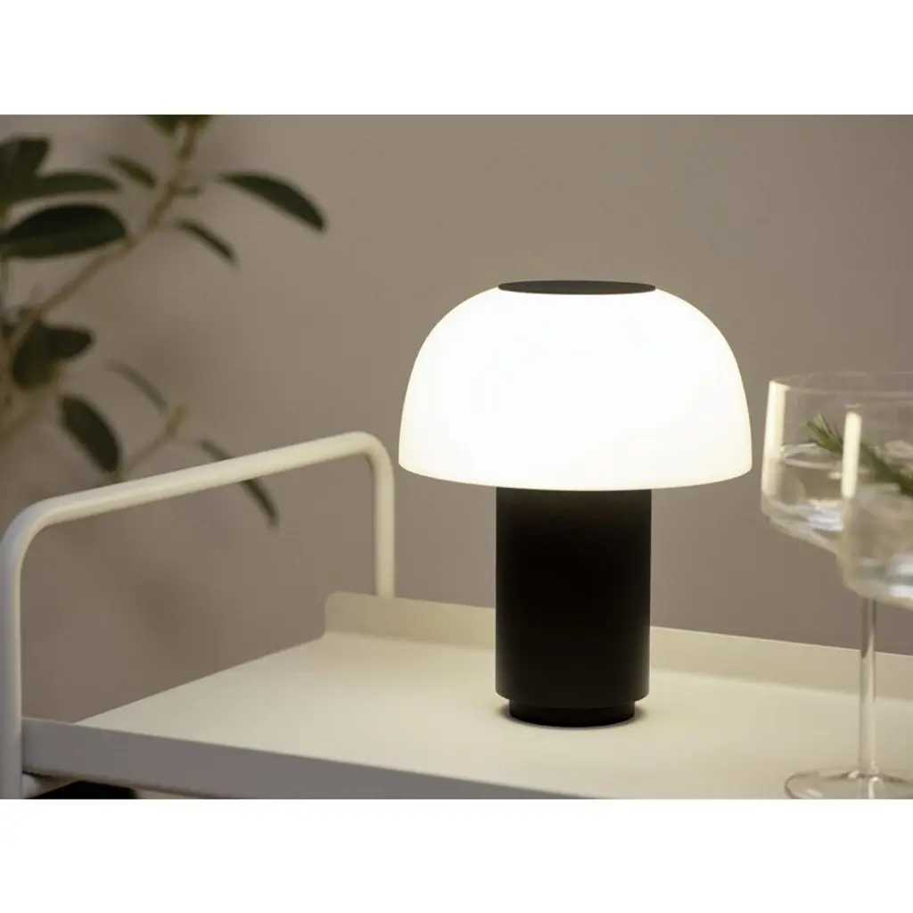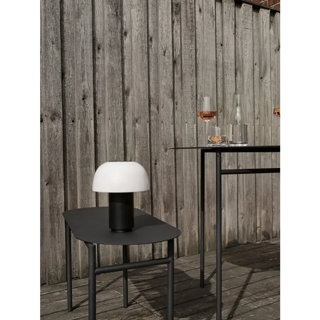 Zone Denmark's Harvest Moon is a portable table lamp featuring a semi-spherical shade that evokes the shape of a half moon, or perhaps a mushroom cap. The colored base creates a striking contrast to the white, translucent shade, which gently diffuses a soft glow into the surrounding space. Thanks to the three-step touch dimmer, you can easily adjust the brightness by simply tapping the top of the lamp. Designed by Mavro//Lefèvre, the rechargeable Harvest Moon lamp charges via a USB-C cable and offers between 8 and 20 hours of light on a single charge, depending on the brightness setting. Designed for indoor use, this cordless lamp moves effortlessly from a wall shelf to the dining table – and can even light up your balcony or terrace for a while, as long as you remember to bring it back inside.