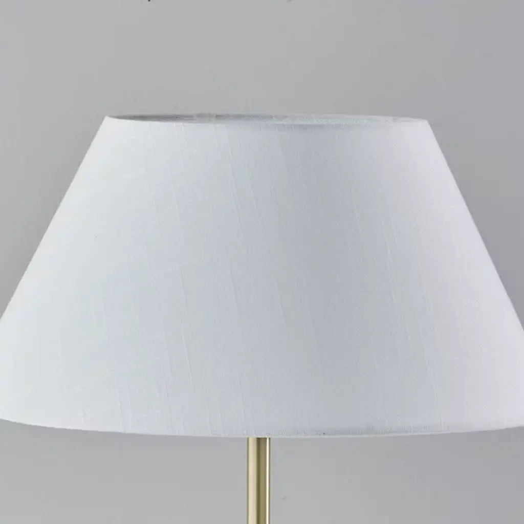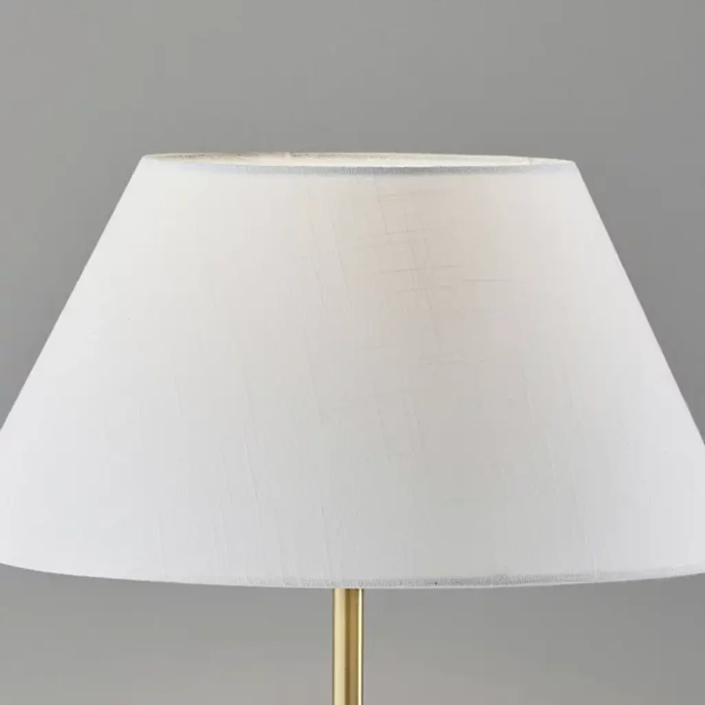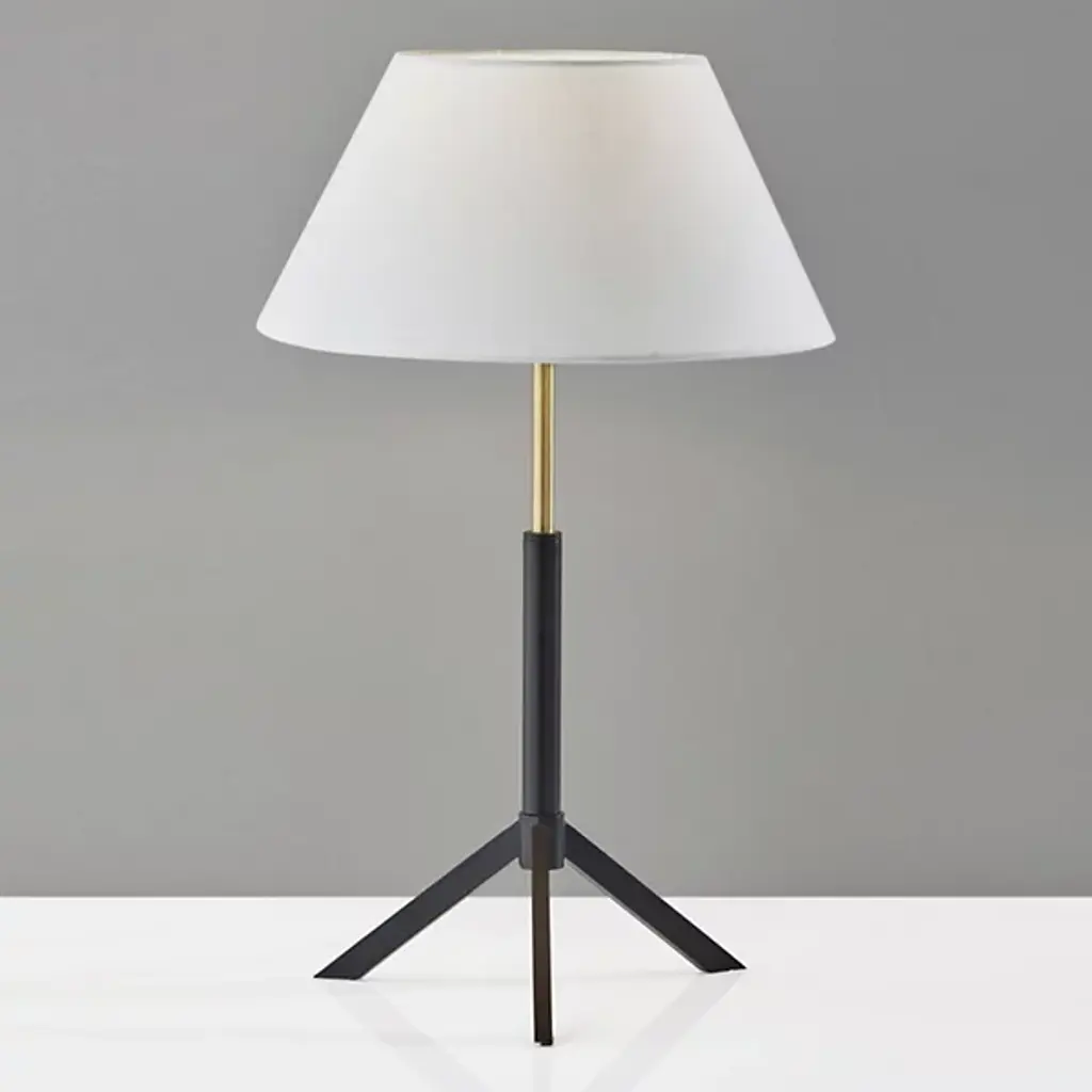 With a sophisticated blend of materials and a functional tripod design, the Harvey Table Lamp by Adesso brings modern chic vibes to your room and is well-suited for nightstands, end tables, accent tables, and desks. The triangle of metal continues up the pole before transitioning to a slender tube. Topping the lamp is a modified drum shade.