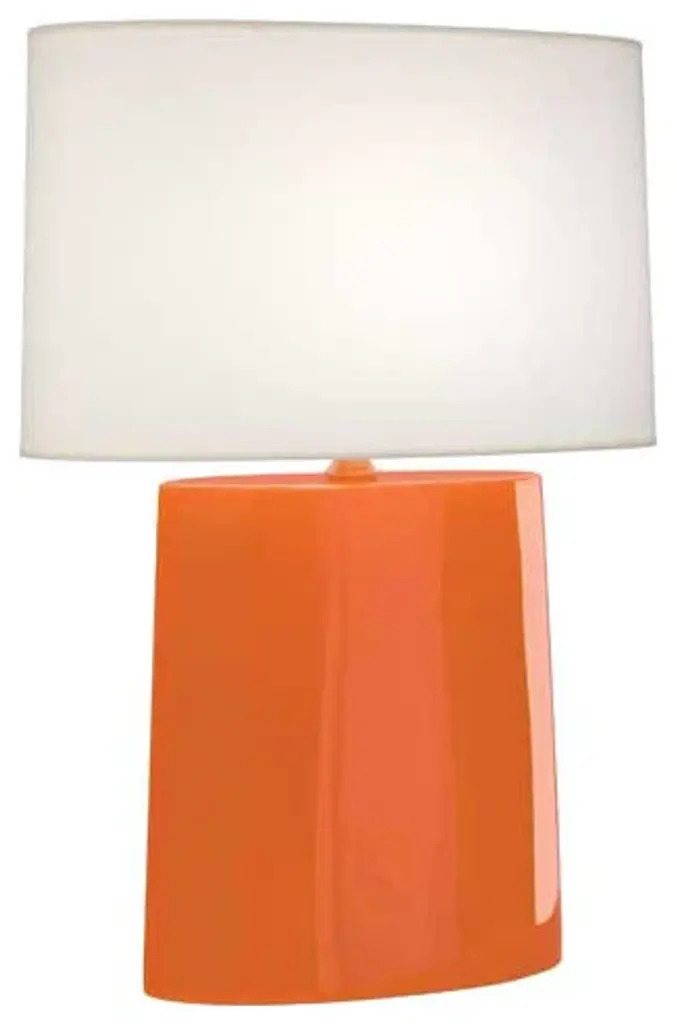 Pumpkin Harvey Contemporary Table LampFeaturesNumber of bulb: 1Bulb type: AMax wattage: 150WVoltage: 120VSocket: Medium Plated Sheet E26Switch: Hi-LoSwitch location: SocketFinish: Pumpkin Glazed CeramicShade: Oyster Linen ShadeCord color: SilverUL listed: DryDimensionsShade dimensions: 19.5 inches top x 20 inches bottom x 12 inches down sideBase dimensions: 1.5 inches height x 8 inches width x 8 inches depth
