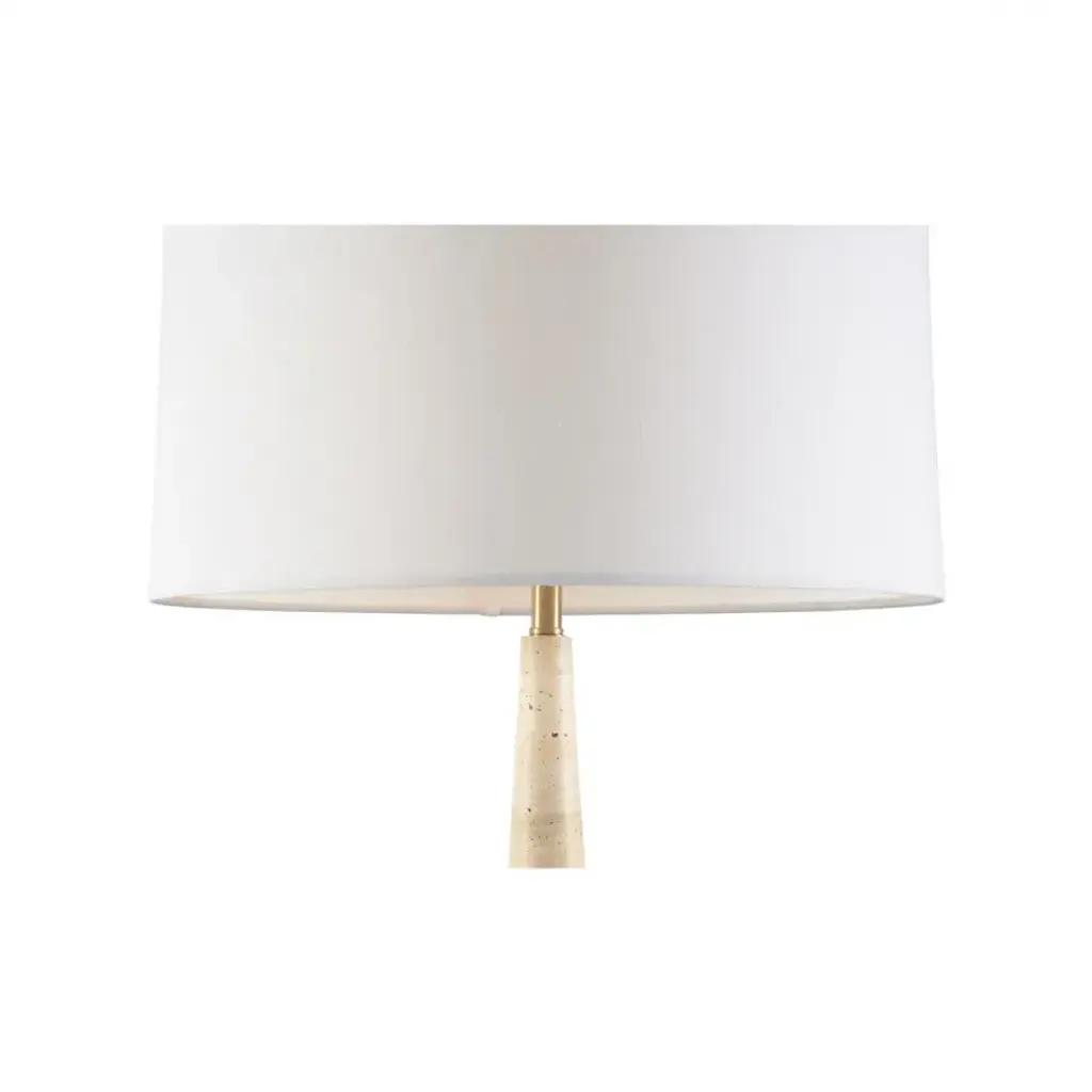 Harwich Lamp features naturally organic travertine highlighted by coffee bronze parts. As a buffet lamp or highlighted on a console, this tall, slender design will blend with any decor.