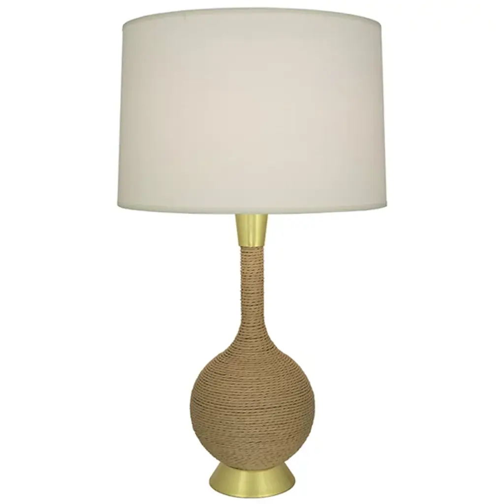 The Hatteras Table Lamp from Robert Abbey embodies timeless coastal design with its elegant blend of metal, fabric, and rope. It features a drum-shaped fabric shade that casts soft, ambient light perfect for creating a welcoming atmosphere. The Hatteras name speaks to the lamp's nautical inspiration, making it an ideal addition to spaces like living rooms, bedrooms, or even a cozy reading nook. This lamp seamlessly combines style and function, adding a touch of coastal charm to any room.