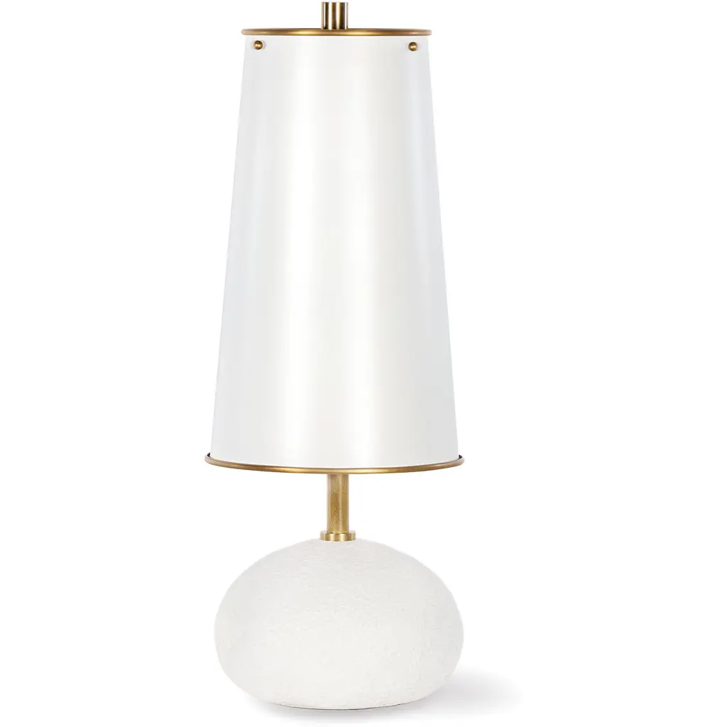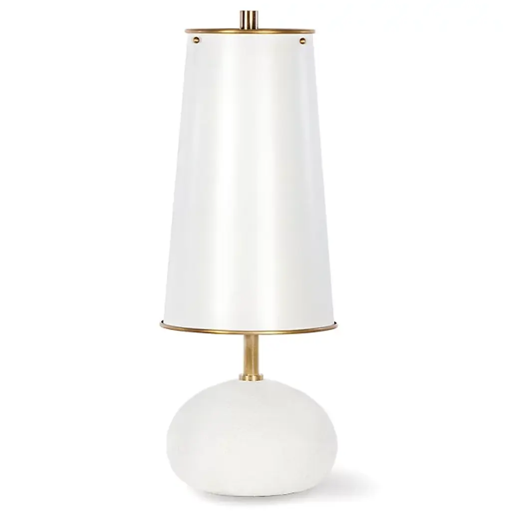The sleek silhouette and textural interest of the Hattie Mini Lamp are a perfect addition to any modern traditional home. The timeless design of the painted white concrete orb base pairs well with the dramatic tapered cylinder shade. Style the Hattie in your office or on your bedside table for a soft and comforting glow.