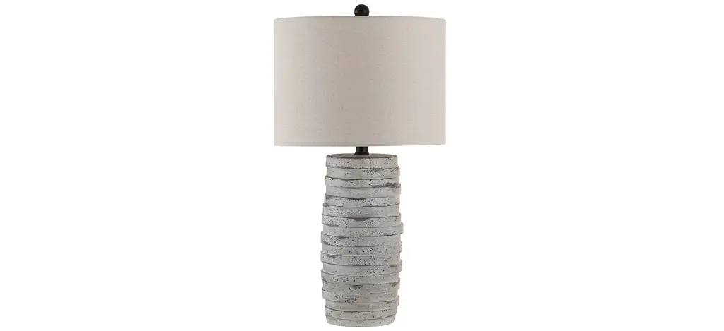 A showcase of mixed materials gives this rustic style table lamp strong farmhouse appeal. The polyresin frame uses a wood finish to enhance the natural aesthetic while also featuring a textured silver band across the center of the body. An oatmeal shade made of linen and polyester adds an element of comfort that makes this table lamp ideal for dining rooms, living rooms and family rooms.eFeatures:Rustic/ Farmhouse/ TraditionalTextured Silver Band On Body Of LampIncludes a 3-way switch located at the neck of the lampShade Shape: DrumRequires 1 x 150 watt Incandescent bulb(s) ( not included)Due to lighting and monitor differences, actual colors and finishes may vary slightly from what appears online.