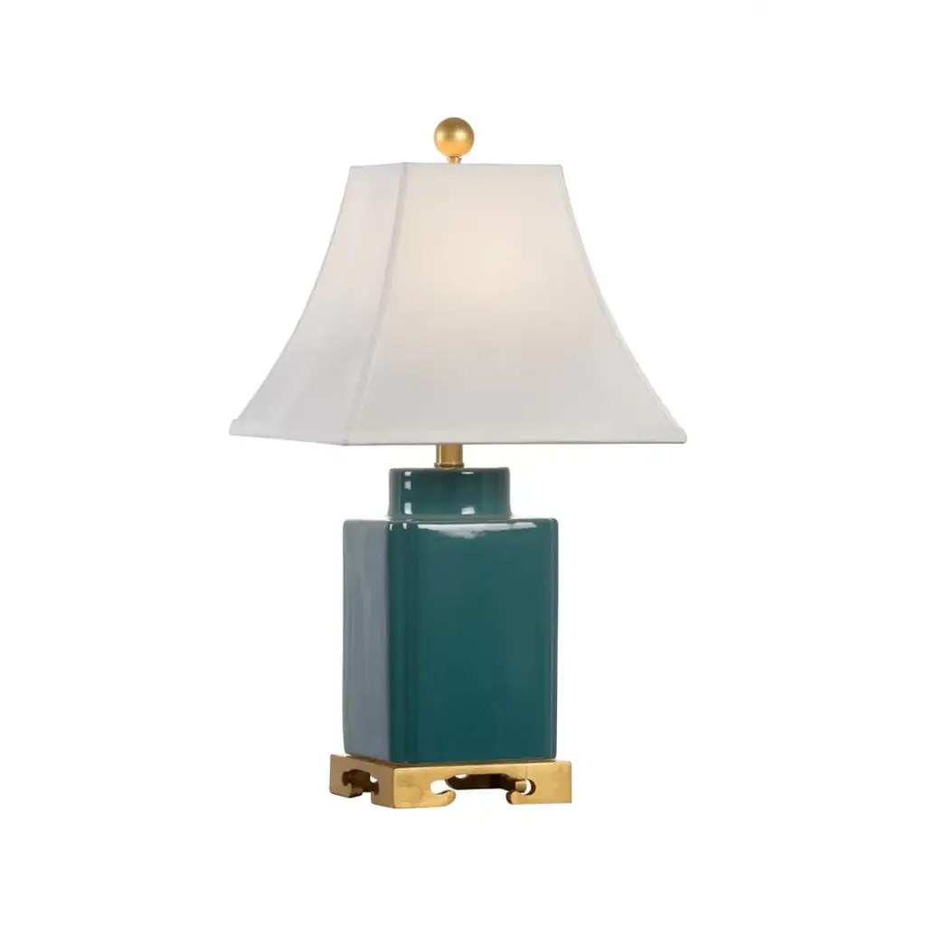 Havering Table Lamp in Azure Turquoise and Aged Brass with Shale Green Shade