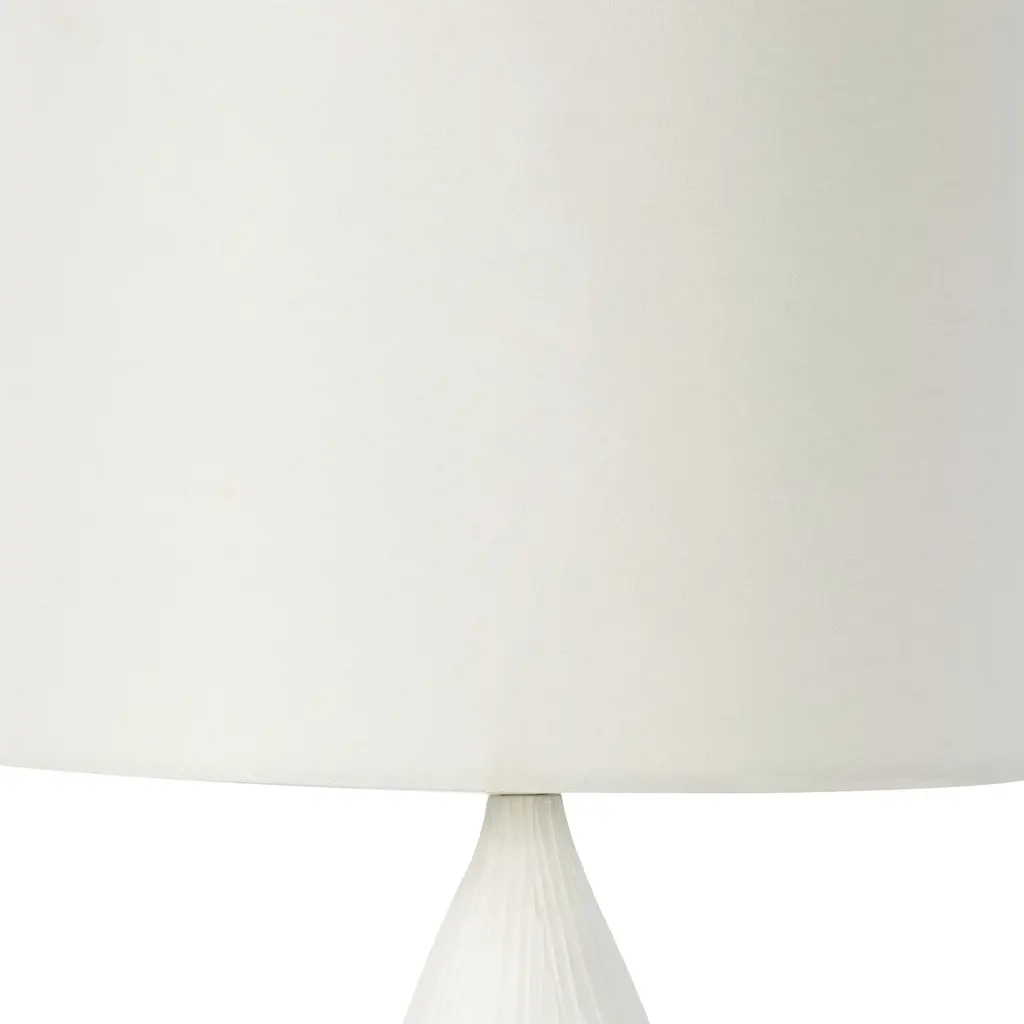 The hand-carved line details of the Hayden provide a simple yet refined design. A clean silhouette made of matte white ceramic allows you to place this lamp in any space to enhance a relaxing atmosphere.