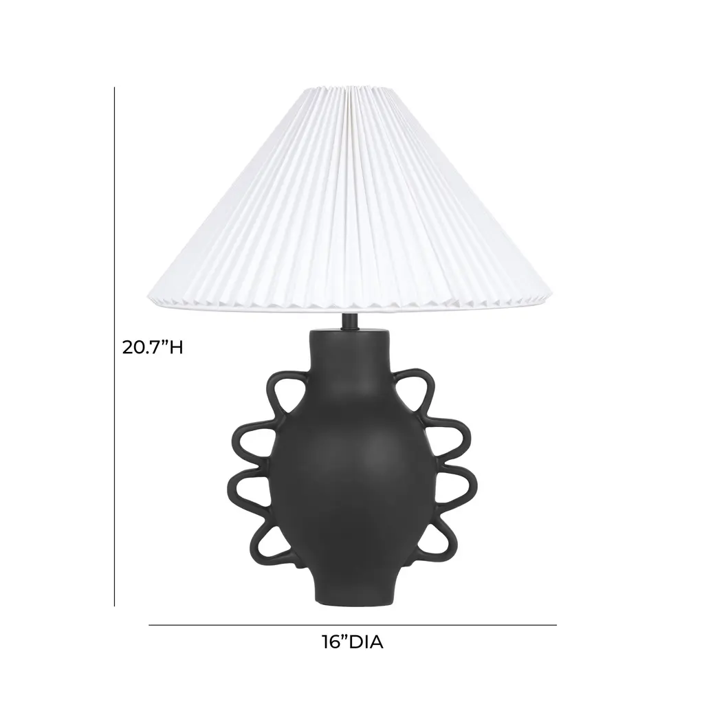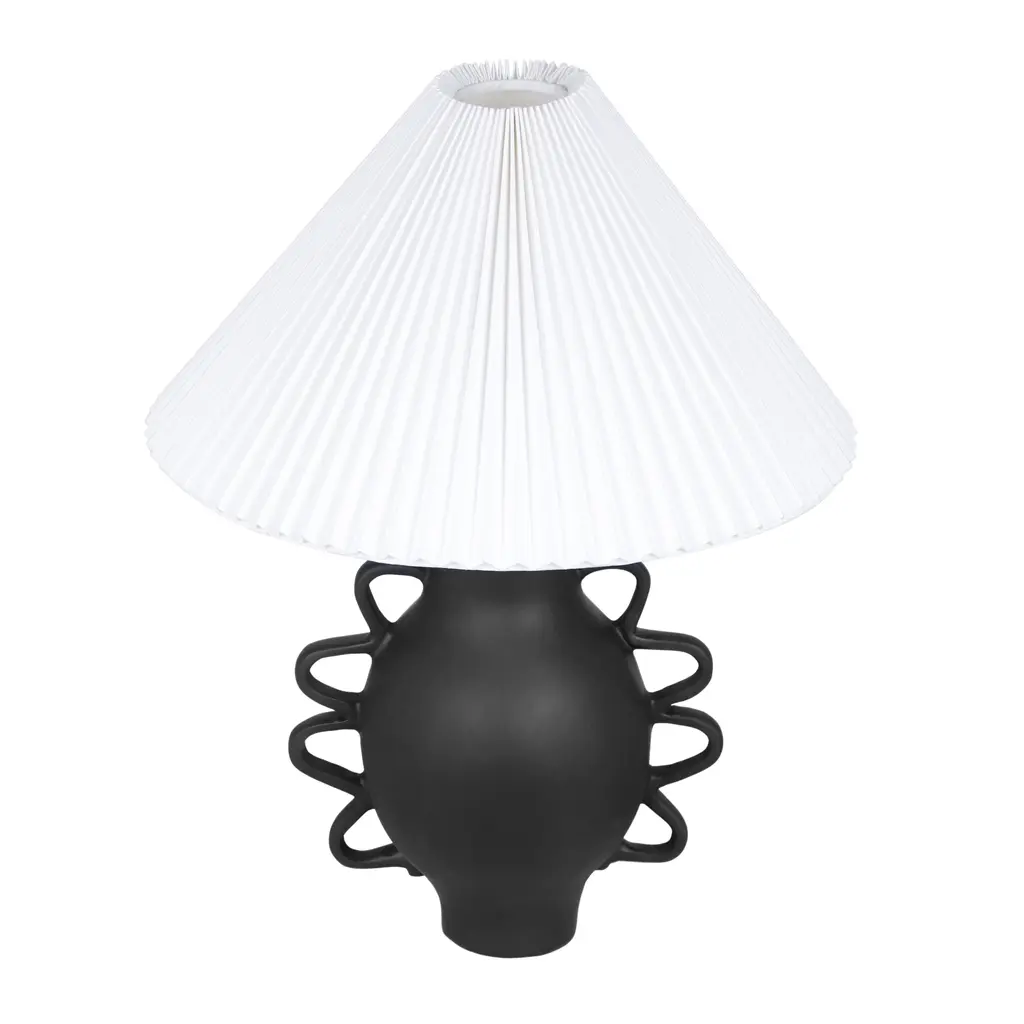 Introduce some whimsy to your space with the Hazza Pleated Table Lamp, available in soft cream or striking black. Crafted with a biomorphic surface texture from hand-formed fiberglass and a pleated lampshade, this lamp is a unique fusion of artistry and functionality. Whether you're completing a maximalist setting or seeking a statement piece for a wabi-sabi neutral space, the Hazza lamp effortlessly adds personality and charm to any room.