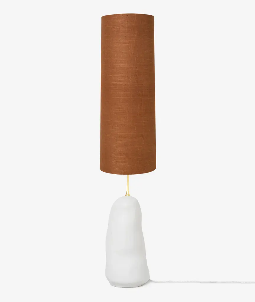 The Hebe lamp series updates the classic lamp with bold shapes and an artistic touch. Initially sculpted by hand, the fluid silhouette of the base is inspired by nature and has a feminine note. Made of ceramic, this tall base features high-gloss glazing in a deep blue nuance, giving the lamp a fantastic way of reflecting light on its curves; or go for a matte, coarse finish, offering any room a rough yet calm look.