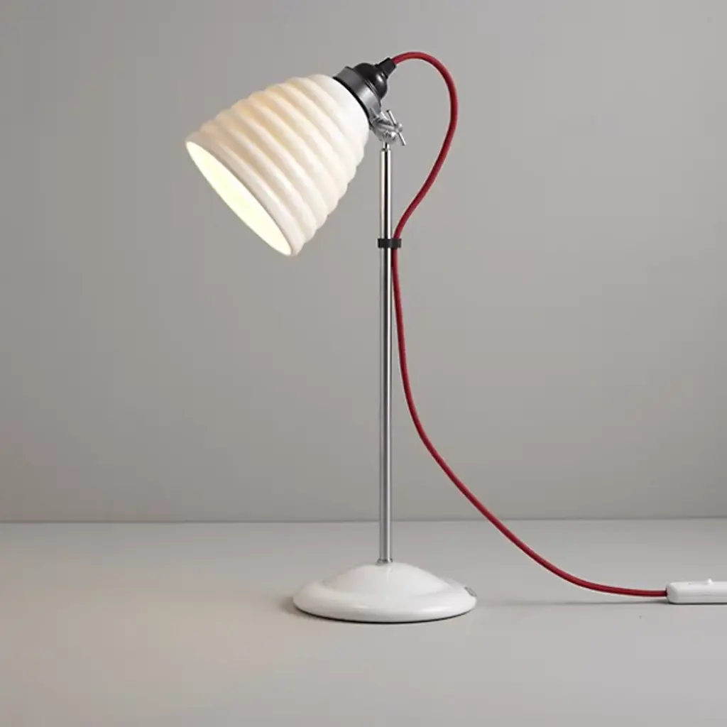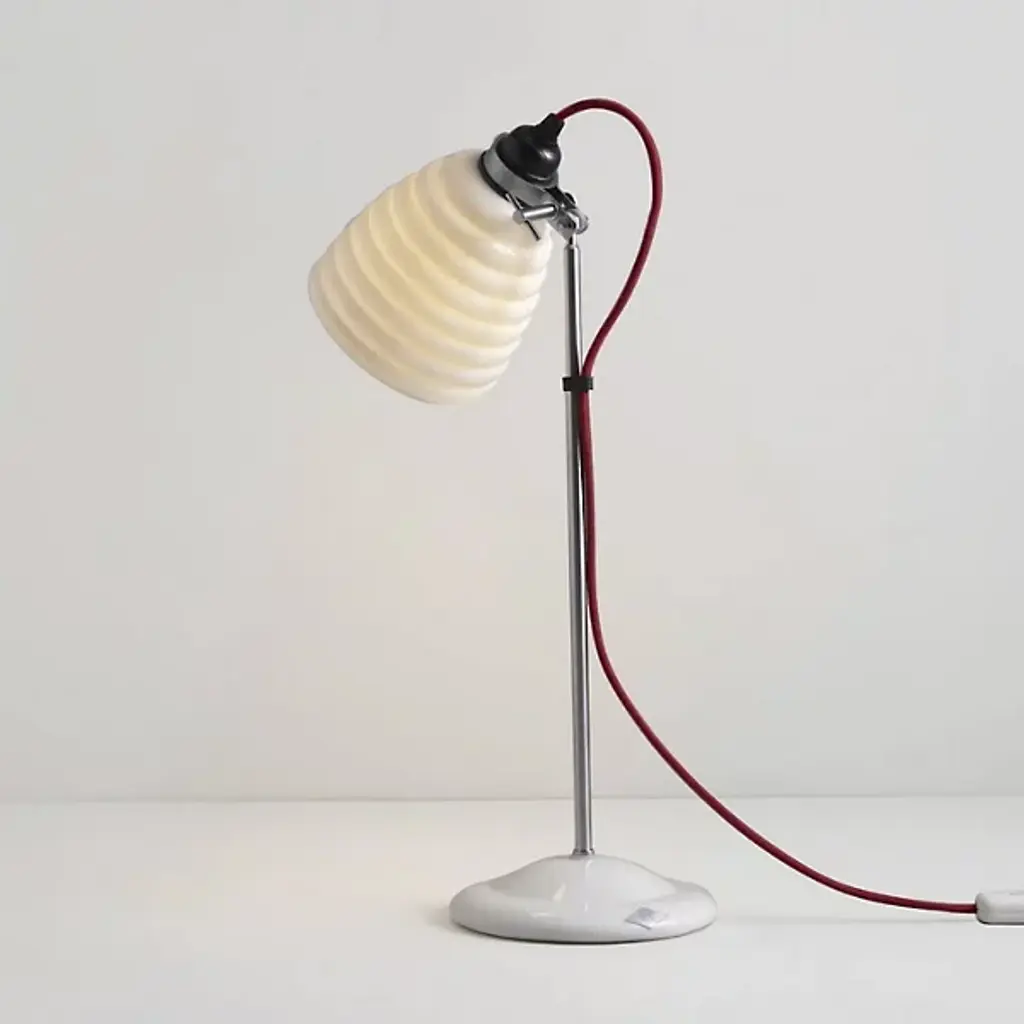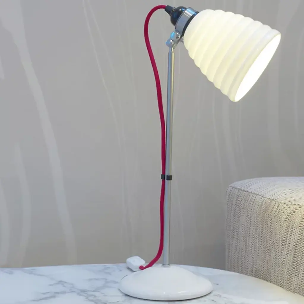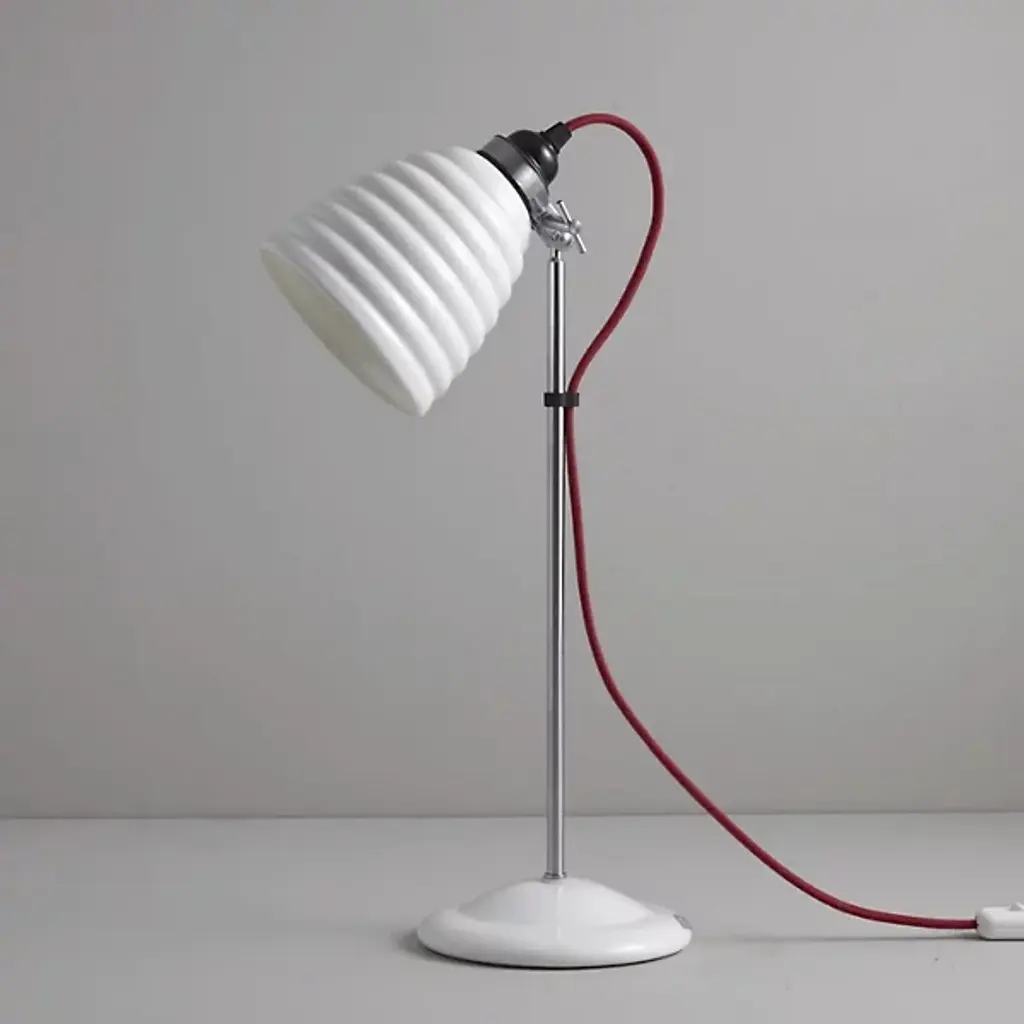 Designed by Sir Terence Conran in 2011, the Original BTC lighting Hector Bibendum Table Lamp celebrates two milestones: the 21st birthday of Original BTC and the 100th anniversary of the Michelin House in London. Made from the finest Bone China, the sophisticated design is shaped in the image of Bibendum (the Michelin Man), featuring a layered shade that is slip-cast and molded by hand. The manner in which the shade is fired produces a translucent quality once lit, and can be easily directed with the help of a smartly detailed aluminum structure.