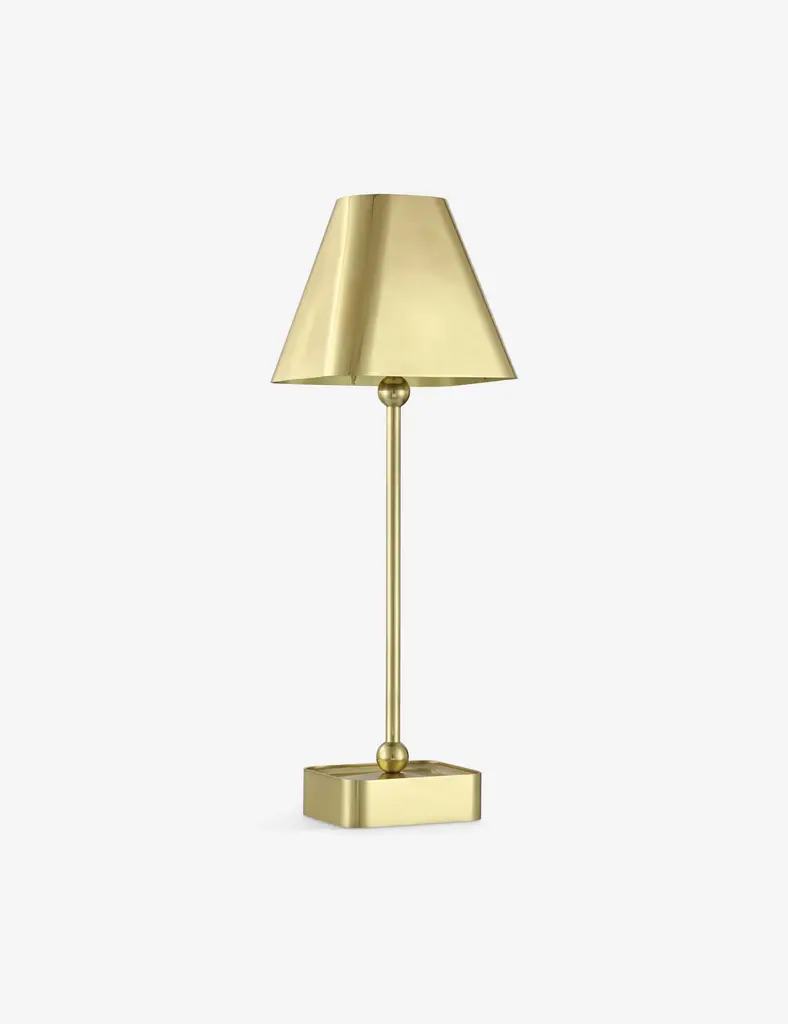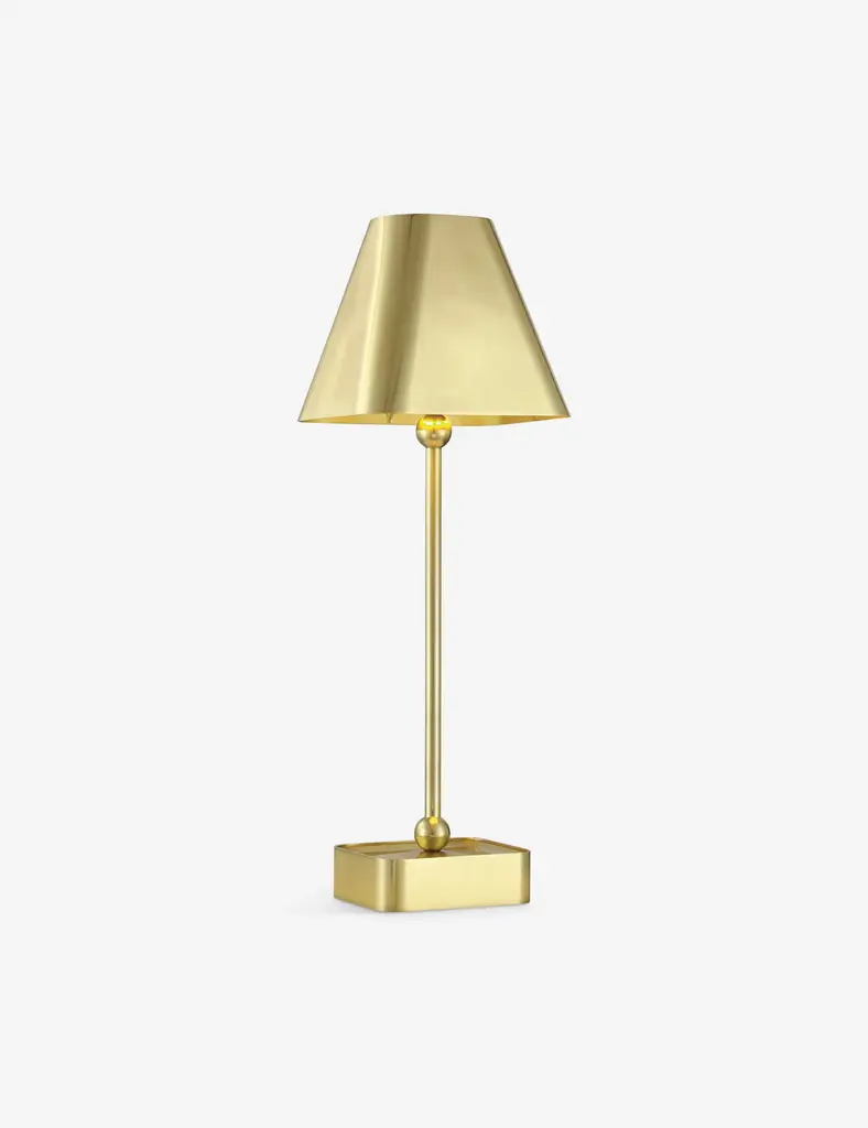 Hedley offers portable light in brass. A seamless finish covers the lamp's petite silhouette, featuring ball finials at either end of the stem for a look that's simply chic. With its rechargeable design, you can style this cordless lamp anywherethe perfect touch of table light to elevate your style.