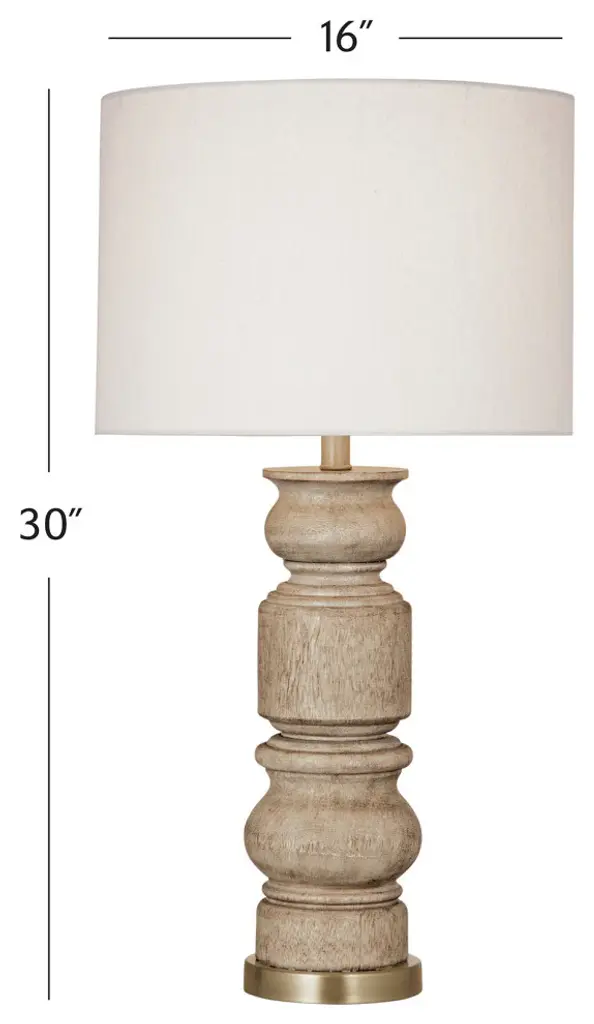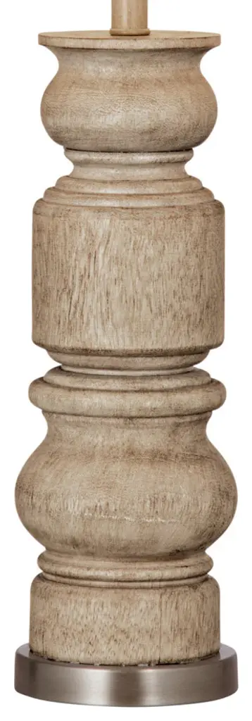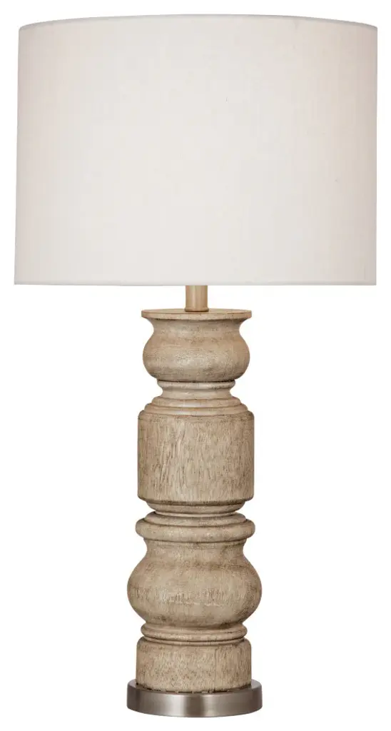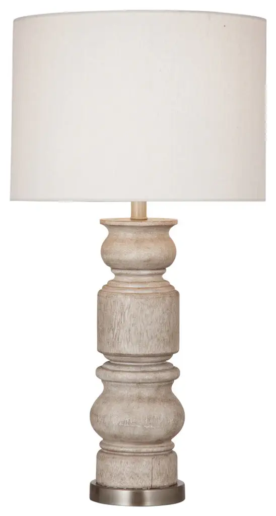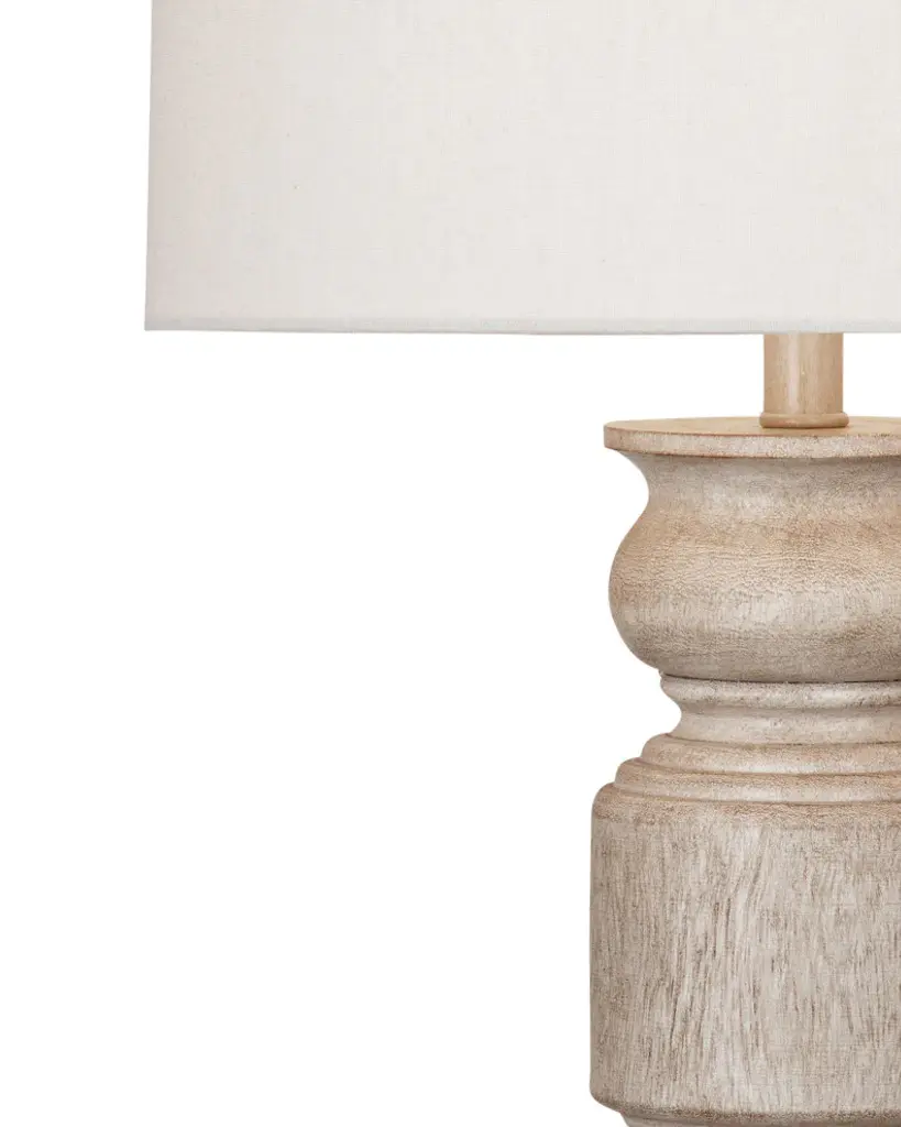 The Helford Table Lamp combines modern and traditional design with its intricately carved wood base, adding texture and elegance to any room. The clean lines and detailed craftsmanship of the base are beautifully complemented by a simple drum-style shade, which softens the light and creates a warm, inviting ambiance. This versatile lamp fits seamlessly into various interior styles, offering both style and functionality. The Helford Table Lamp is an ideal choice for adding a refined touch to your space while providing practical lighting.Features:Traditional design with modern aestheticsFeatures a white drum style shadeBulb Type A required, not includedEasy assembly - just attach harp, finial and shadeRequires 1 x 100W Watt Replaceable LED (Not Included)For over a century, Bassett Mirror has been synonymous with style and quality, transforming homes with its sophisticated and timeless designs. With a wide-ranging collection of furniture, lighting, mirrors, and art, Bassett Mirror seamlessly blends modern style with classic appeal. From rustic modern to luxe glam, each piece is thoughtfully crafted to inspire and elevate any space. Committed to exceptional value and customer care, Bassett Mirror makes it easy for homeowners to create beautiful, personalized interiors with confidence.