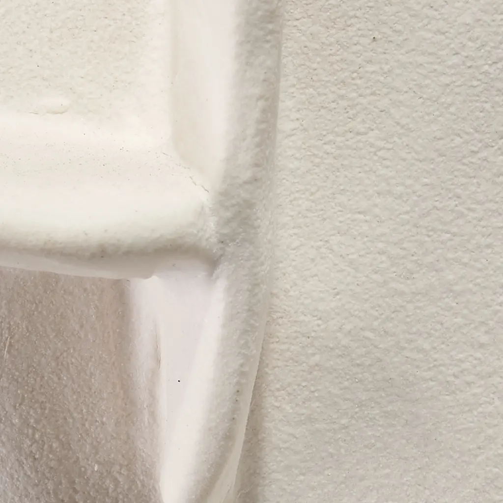Beautifully handcrafted of white ceramic, this showstopper of a table lamp is a riot of rich texture. To balance the free and bold shape of the base, we pair it with a simple white linen drum shade and a coordinating finial, harp, and spider in clean white resin.