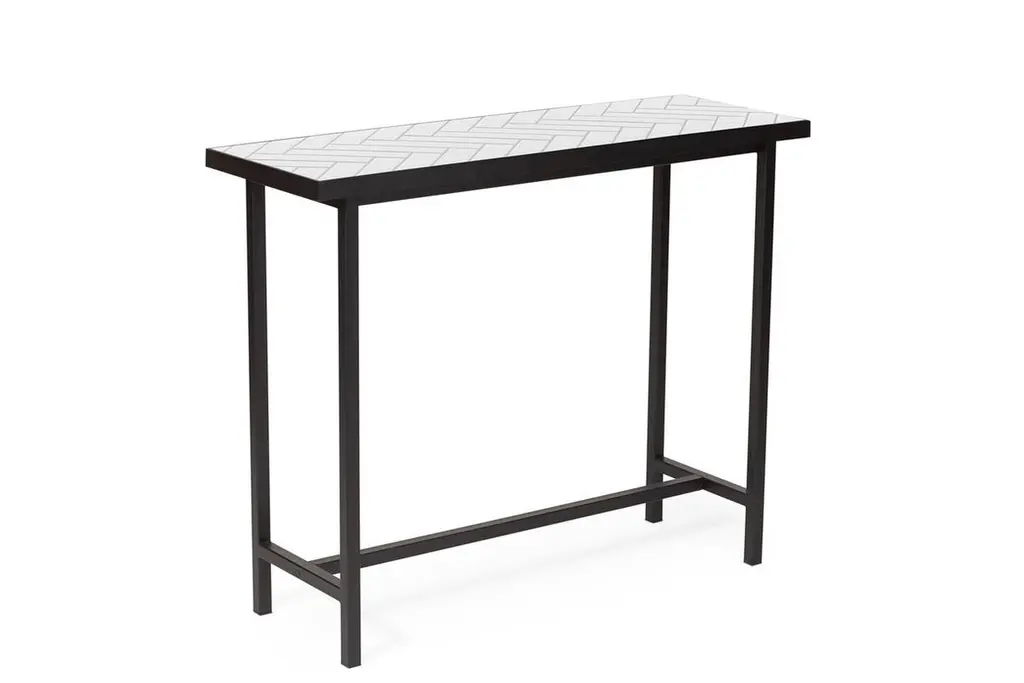 Herringbone Tile Console Table White Tiles Black Steel By Warm Nordic