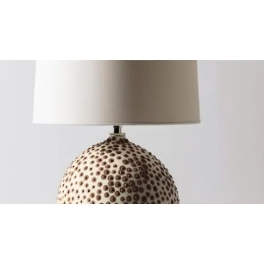 Hesse lamp in Tusk by Elyse GrahamDimensions: W 31 x H 49 cmMaterials: Plaster, Resin, Cotton rag Paper, brass, Nickel. Hardware: Polished nickel-plated brass uno threaded socketwith turn key switch, in-line dimmer.Molded, dyed, and finished by hand in la. CustomizationAvailable.All pieces are made to order.All our lamps can be wired according to each country. If sold to the USA it will be wired for the USA for instance.This collection is inspired by the unique galaxy of microorganisms living within each of us. We created a technique for dying and stippling each base that evokes the nature of microbes as they grow and colonize. The base of each lamp is hand-cast with hydrocal plaster inside of a unique balloon shape. The interior of each piece is poured with layers of resin, impregnating the plaster with added strength and hardness. Finally, each base is hand-dyed with custom mixed pigments and finished with a unique pattern of dyed plaster protuberances. The exterior is sealed with a UV resistant acrylic coating. Our shades are made by hand using a heavyweight cotton rag paper and attached to a nickel-plated swivel fixture with a turn switch. An in-line dimmer switch on the cord provides adjustable light settings. Due to the nature of the UV sensitive materials in our lamp bases we recommend using LED lightbulbs exclusively.Meet our teamElyse Graham is the founder and creative director of the studio. Driven by Elyse’s unique vision of building a studio that fosters and emphasizes connection, play, and experimentation (of people, processes, and in turn the objects created and shared) our small team works closely and collaboratively on each project. Elyse received a BA in sculpture and semiotics at Brown University. After years of making sculpture and running a business in jewelry design, Elyse decided to merge her separate practices and redirect her attention toward collectible design in 2013. The creative trajectory of the studio is heavily influenced by Graham’s background in fine art, specifically her interest in process-driven and material-based artwork. The studio’s vocabulary of shapes, patterns, and forms comes from a lineage of unconventional processes Graham has developed and built for working with plaster and resin. Graham shares her studio as well as her home with her husband, Lewis Mauk and their daughter, Eero. Miller Robinson is head of our production department. From pigmenting and casting materials for all of our products in plaster and resin to graphic and production design, they wear many hats in our studio. Miller joined our team in 2014 and has been an integral part of designing many of our experimental processes that have lead to the creation of our unique MetaMATERIAL. Like Elyse, Miller has a background in material and process-oriented making, which led to an instant connection and collaborative understanding between the two. Miller received their BFA from Otis College of Art and Design with a focus on painting, installation, performance, and writing. Their individual art practice focuses on the preservation and potentialities of underrepresented histories and encompasses objects, garments, actions, tattooing, and books. Their personal work has been exhibited in Los Angeles at the Southwest Museum, Los Angeles Municipal Art Gallery, Heritage Square Museum, and with Los Angeles Contemporary Exhibitions (LACE), as well as HORESEANDPONY Fine Arts in Berlin.Lewis Mauk is our studio and operations engineer. Working on facilities and production design as well as engineering and leading all of our large-scale constructions and installations, Lewis’ unique set of technical skills gives form and structure to our studio’s unconventional ideas and processes. Lewis has been working behind-the-scenes since the creation of the studio but joined our team full-time in 2020. Consistent with the rest of our team, Lewis has a background in process-driven fine art and has extensive training in woodworking, printmaking, and photography. He received a MFA from CalArts and has worked across the fields of education and fabrication. Lewis’ combined interest in the creation of personal archives mixed with his commitment to sustainable life practices, has brought a focus and important emphasis on designing studio projects and processes that imagine ways to reduce and reuse studio material fragments.