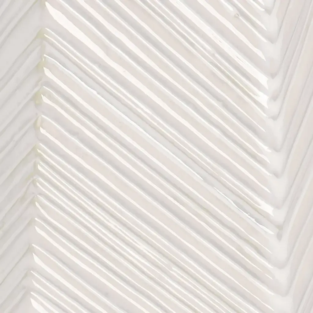 This architectural table lamp stands at cloud scraping 31" tall. The chevron texture on the ceramic surface adds to the natural, creamy finish, making it a great casual lamp for any room.