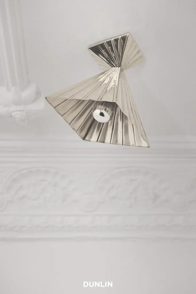 Designer's NotesHK05"Handelsmann and Khaw have long admired the quality and refinement of Dunlin's collections. Our first collection came about from where we found a need for feature lights in our projects, small moments of decorativeness that tread the line between masculine and feminine, that work in contemporary spaces as well as heritage homes. We were inspired by vintage lights and antique silverware particularly French and Danish pieces from the 1920s-1940s." -Handelsmann and KhawEach piece is handcrafted, and no two items or batch runs are exactly the same. Slight variations in colour and finish textures are a natural part of the process.Technical DetailsCrafted exclusively for Handelsmann + Khaw by Dunlin.Indoor Use Only IP 22Height 200mm, Diameter at top opening 90mm, Diameter at bottom opening 160mmFixed 30 degree tiltLampholder: E14Supplied with E14 Mirror dipped Globe220-240VContact us for Low Voltage and US, UL componentsLead TimeAvailable now. Allow 5-6 days handling time.Dunlin, Founded in 2010 by Australian architect Nicholas Barber, Dunlin has grown to be a devoted source for Australia’s leading Architects, Interior Designers and private clients for lights of exceptional beauty and quality.Exclusively distributing leading international lighting firms for over a decade, Dunlin remains the designers choice for lights and objects of beauty. Dunlin is located in Bondi Beach, Sydney, Australia.