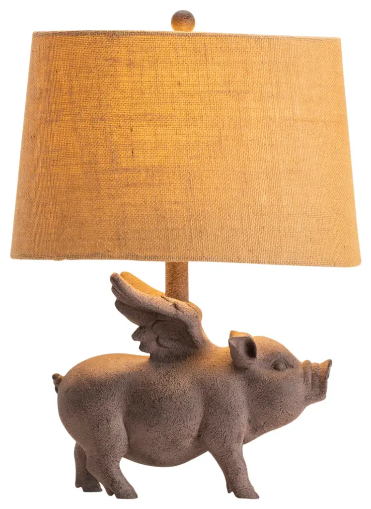 Hogs Fly Table Lamp21" Ht., ResinAntique Iron Finish13/7 x 15/10 x 9.5 Burlap Shade