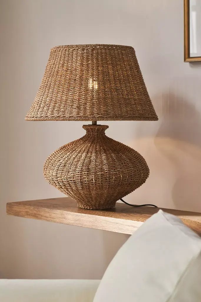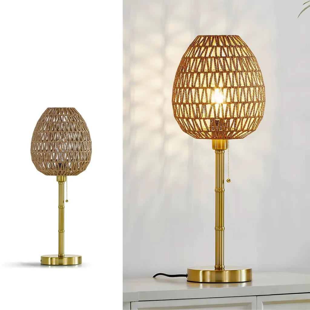 HOMEGLAM woven rattan shade lamp series, the simple elegant 26.5 inch high table lamp come with a quality hand crafted woven rattan lamp shade, the lamp use one A19 12W max LED bulb ons E26 standard socket base and control with a classic socket pull chain on/off switch. Our creative woven rattan shade lamps bring a decorative accent and contemporary natural ambiance in your space.• 26.5" high table lamp • 10"ø Hand crafted oval woven rattan lamp shade • Strong steel construction with 7"ø steady weighted base • Easy reach classic chain pull on/off switch • Uses one 60W max. incandescent or equivalent led bulbs, *Bulbs not included • UL Listed, assembly required * Available in table lamps