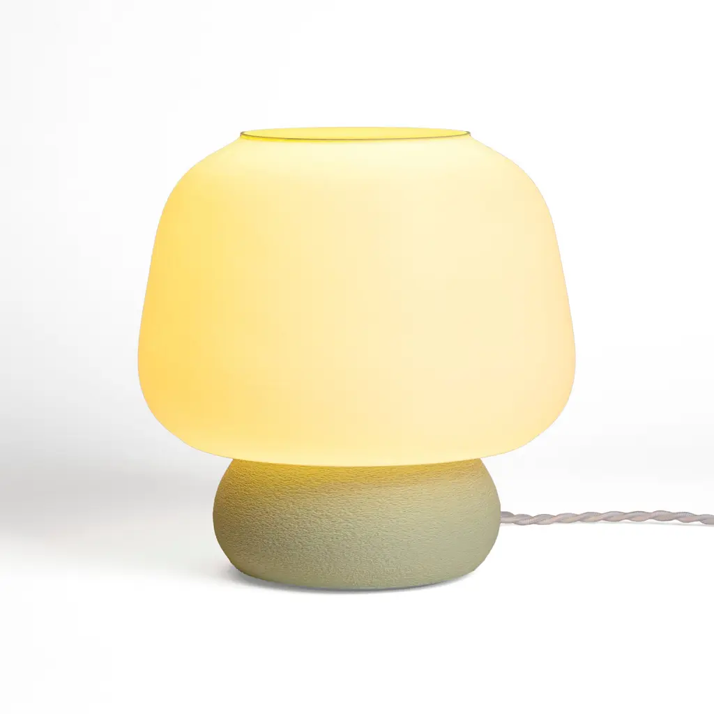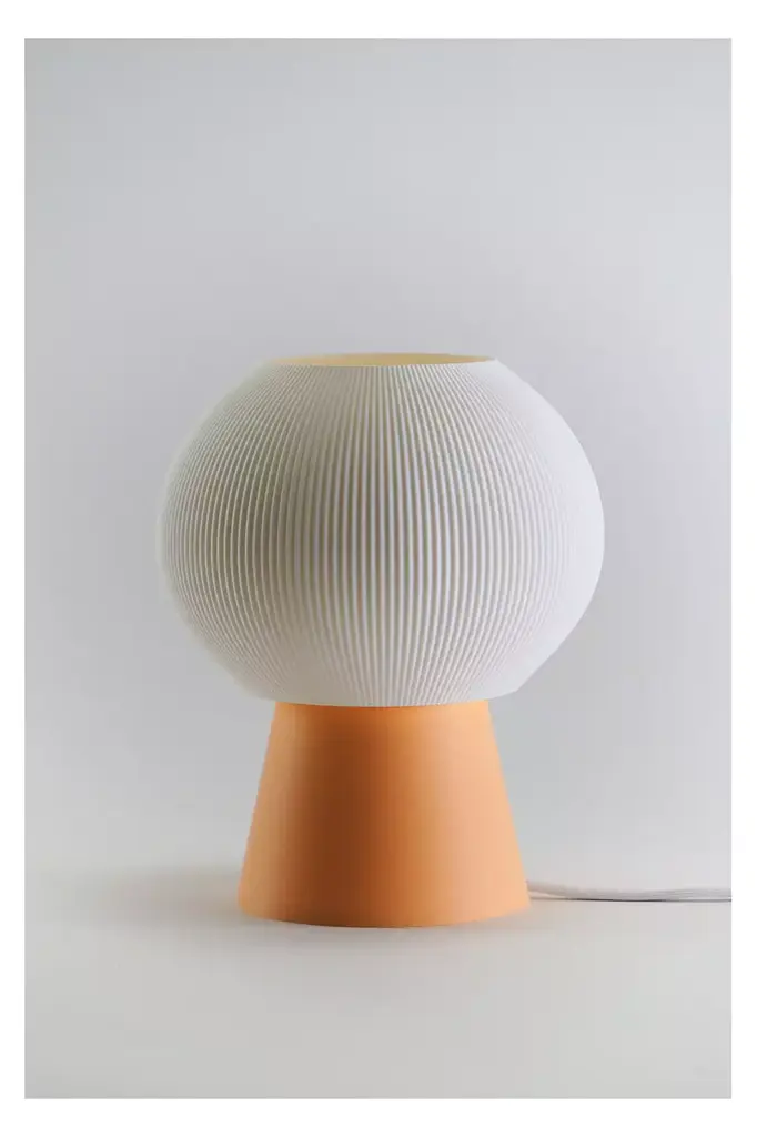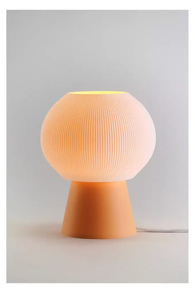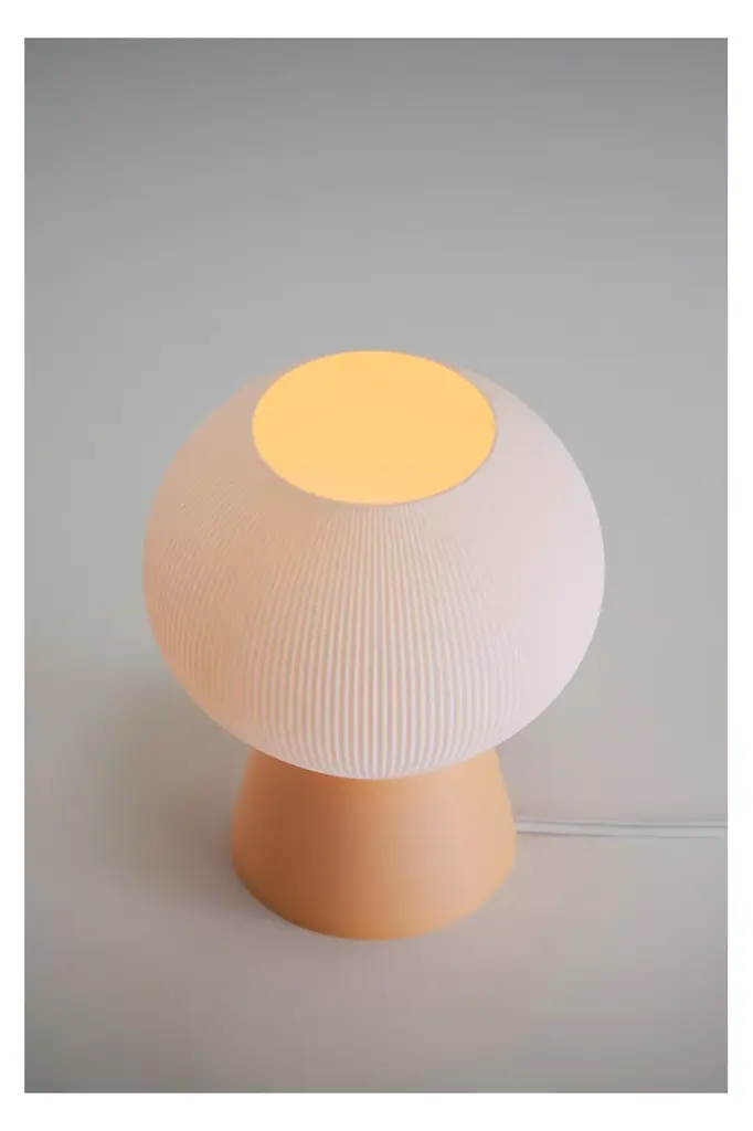 The Mooshie Table Lamp is an interpretation of a whimsical mushroom silhouette. It'll bring warm and happy vibes to any space. Great mood lighting for your working desk or table. The Mooshie Table Lamp is designed, 3D printed, and hand assembled by Honey and Ivy Studio in Portland, Oregon. The 3D printing process is similar to making ceramic pottery in that each printed part is unique and has its own character. **Content + Care** \- 3D printed utilizing plant-based polymer \- Only use LED bulbs 9 watts maximum. Don’t use incandescent bulbs due to high heat. \- 10 ft white cord with on/off switch \- Gently wipe down with microfiber cloth \- We build to order. Please allow 5 days to build before shipping \- Designed, 3D printed, and assembled in Portland, Oregon **Size + Fit** \- Dimensions: 7.9" h x 6.5" w x 6.5" l
