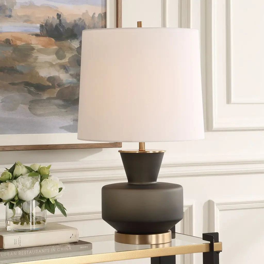 Embrace the timeless elegance of Mid-Century Modern design with the Honoria Table Lamp. This exquisite piece showcases a unique glass base, beautifully complemented by lightly antiqued brass-plated accents. Topped with a tapered round hardback shade, covered in crisp white linen fabric, this lamp effortlessly combines style and sophistication, making it a perfect addition to any space.