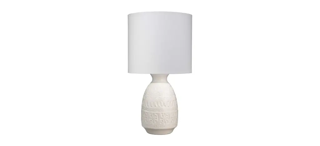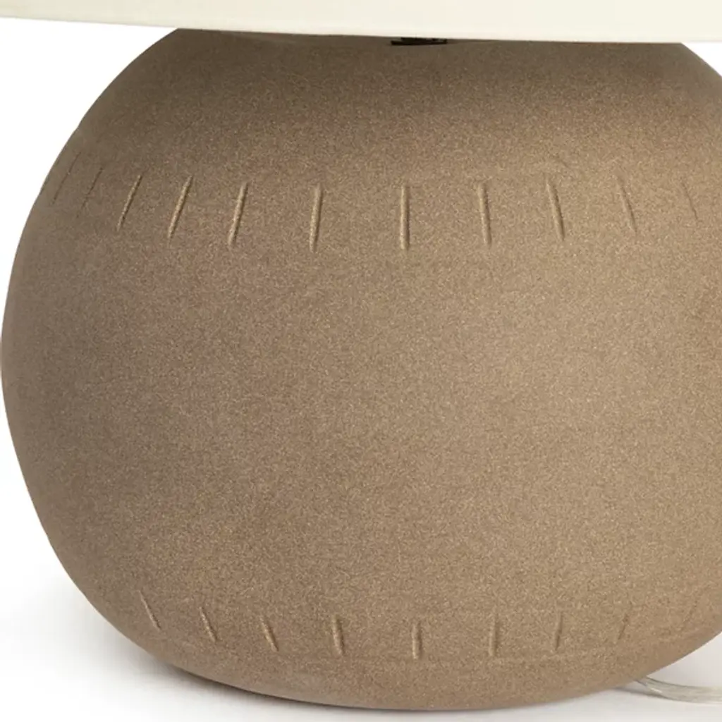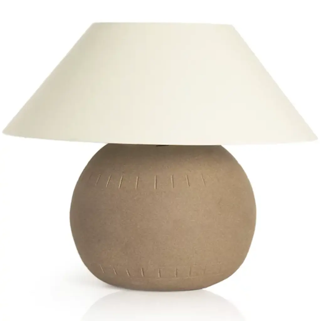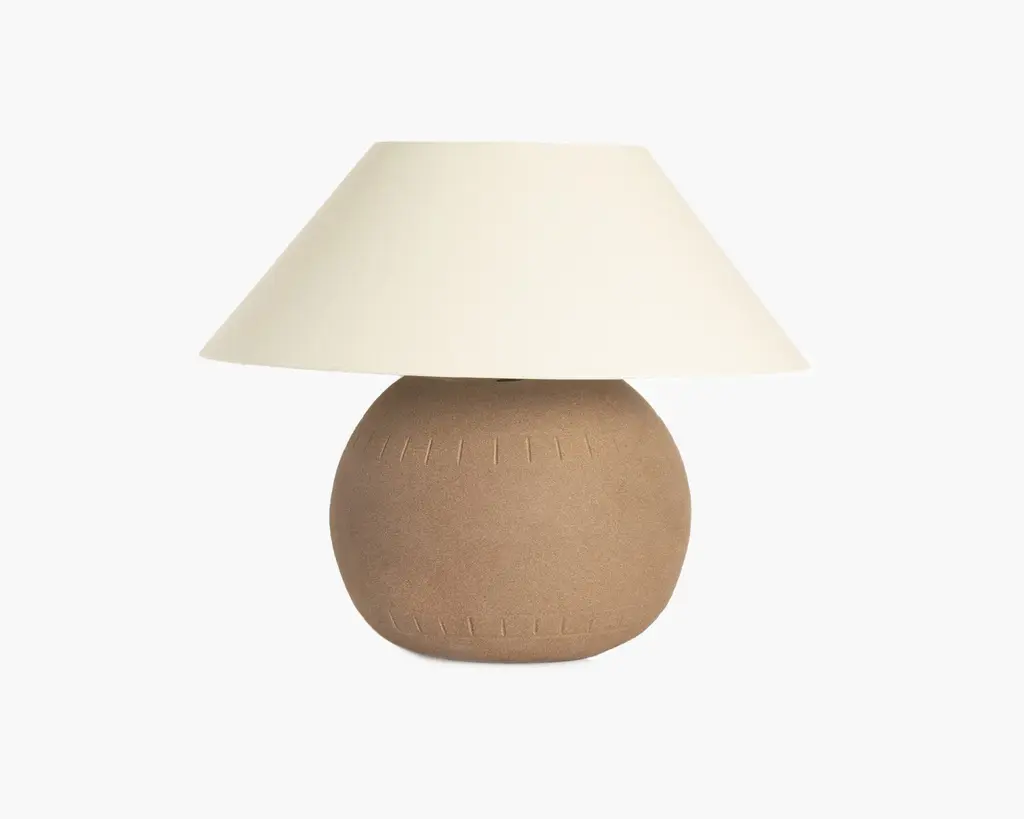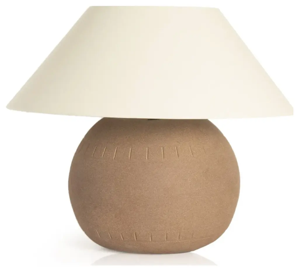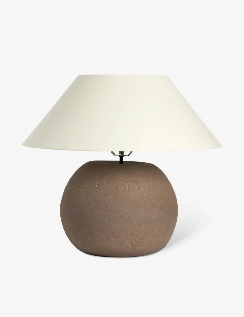 Inspired by vintage clay pots, the Houns Table Lamp by Four Hands brings a transitional aesthetic to your interior design. Your table lamp is made of lovely talavera and is topped with a tapered linen shade in versatile ivory. Fine lines decorate the summit and base of the Honus Table Lamp’s globe-shaped body.