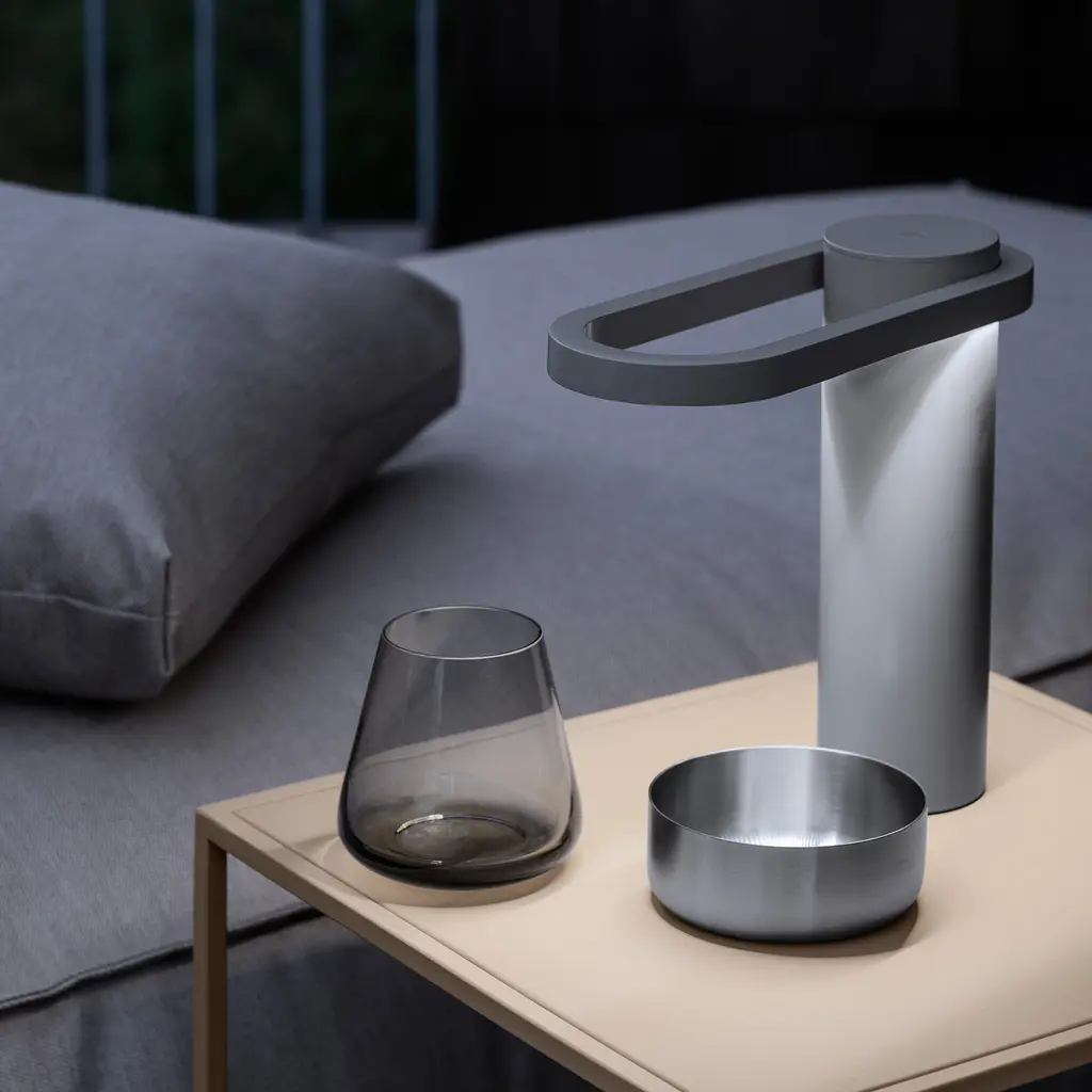 Introducing the Hoop Lamp, an exceptional minimalist bedside lamp that effortlessly enhances your indoor and outdoor ambiance. Designed by the esteemed French designer Antoine Rouzeau, this versatile and stylish minimalist bedside lamp is the perfect addition to those who appreciate a perfect blend of elegance and functionality in their lighting solutions. The Hoop LED Lamp showcases a minimalist design, consisting of two primary components – a sturdy base and an oval hoop that expertly directs light downward, creating a warm and inviting atmosphere. Its balanced and straightforward design makes it the ideal minimalist bedside lamp for various settings, from cozy bedrooms to relaxing outdoor spaces. Read more One of the standout features of this portable lamp is its impressive water resistance, allowing you to enjoy its delightful illumination even in damp or wet conditions. The high-quality materials and robust construction ensure that the Hoop LED Lamp is well-suited for use in a wide range of environments. Operating the Hoop Mobile Rechargeable LED Lamp is a breeze, thanks to the touch-sensitive button conveniently located at the top of the unit. This user-friendly feature makes it easy to control the intensity of the light, allowing you to adjust the atmosphere to suit your specific needs. In addition to its striking design and superior performance, the Hoop lamp is also environmentally friendly. Its rechargeable nature means that you can enjoy hours of uninterrupted illumination without the need for disposable batteries or constant access to a power source.