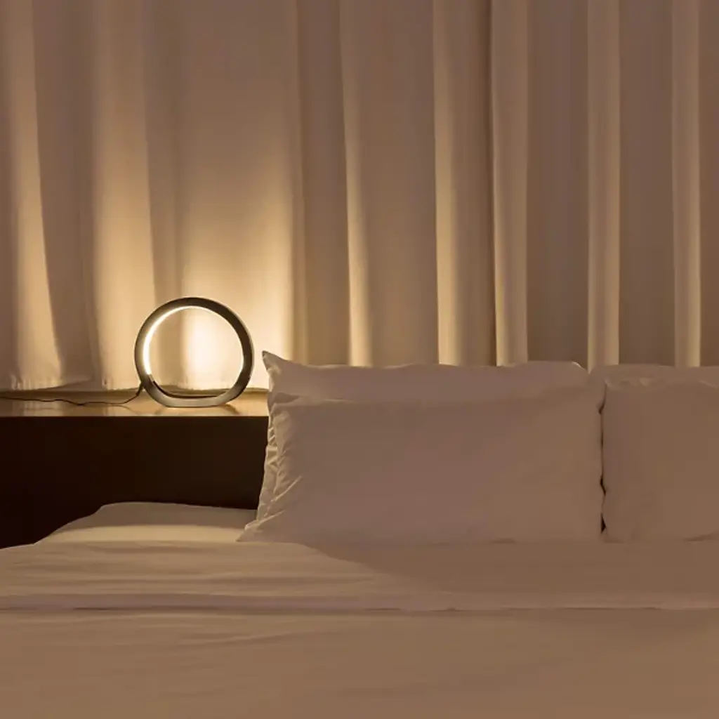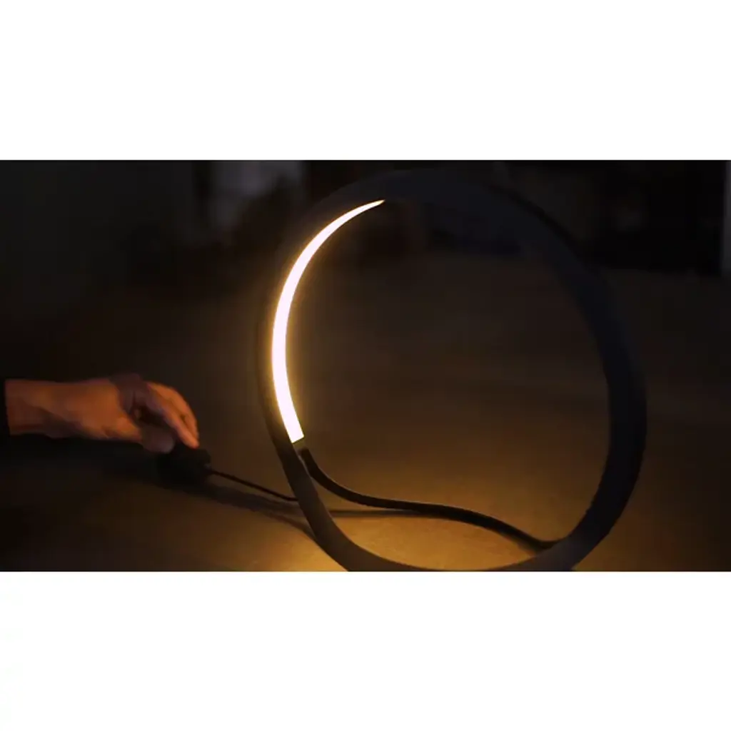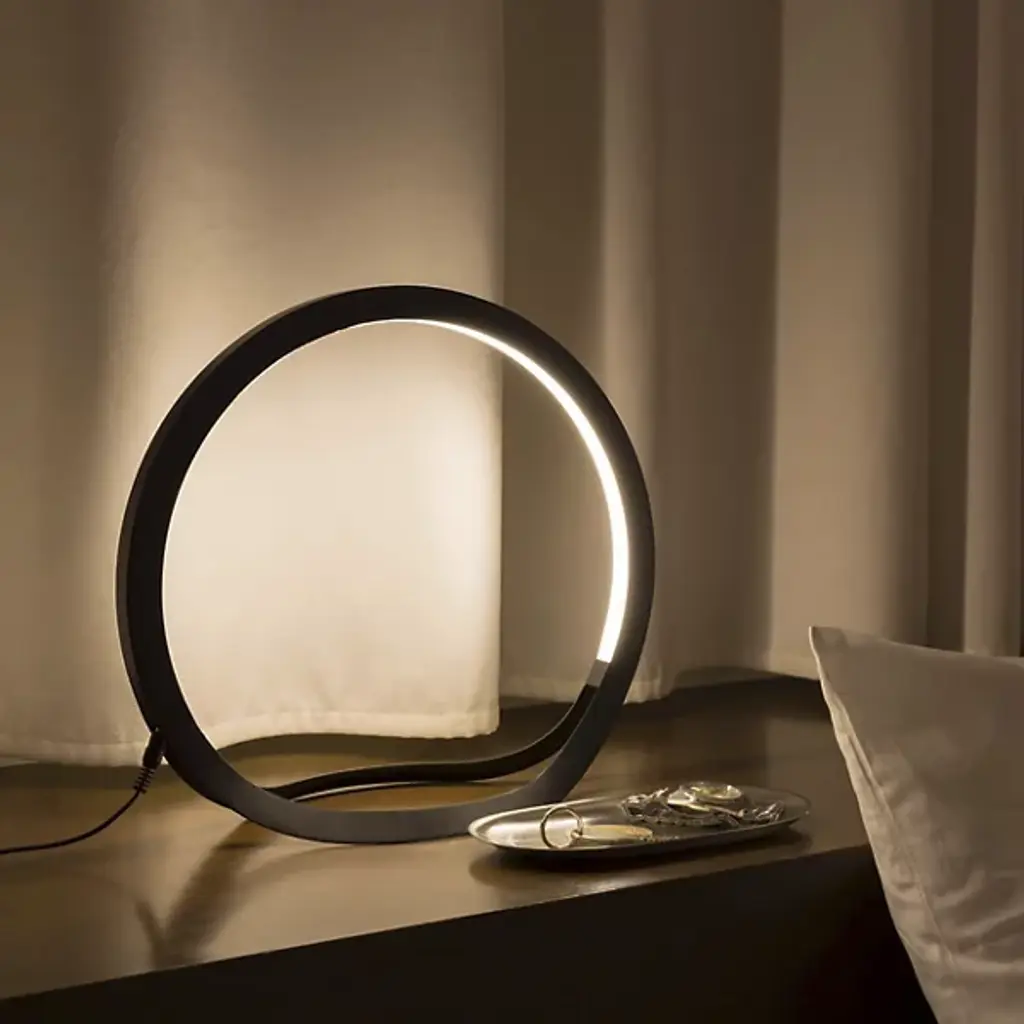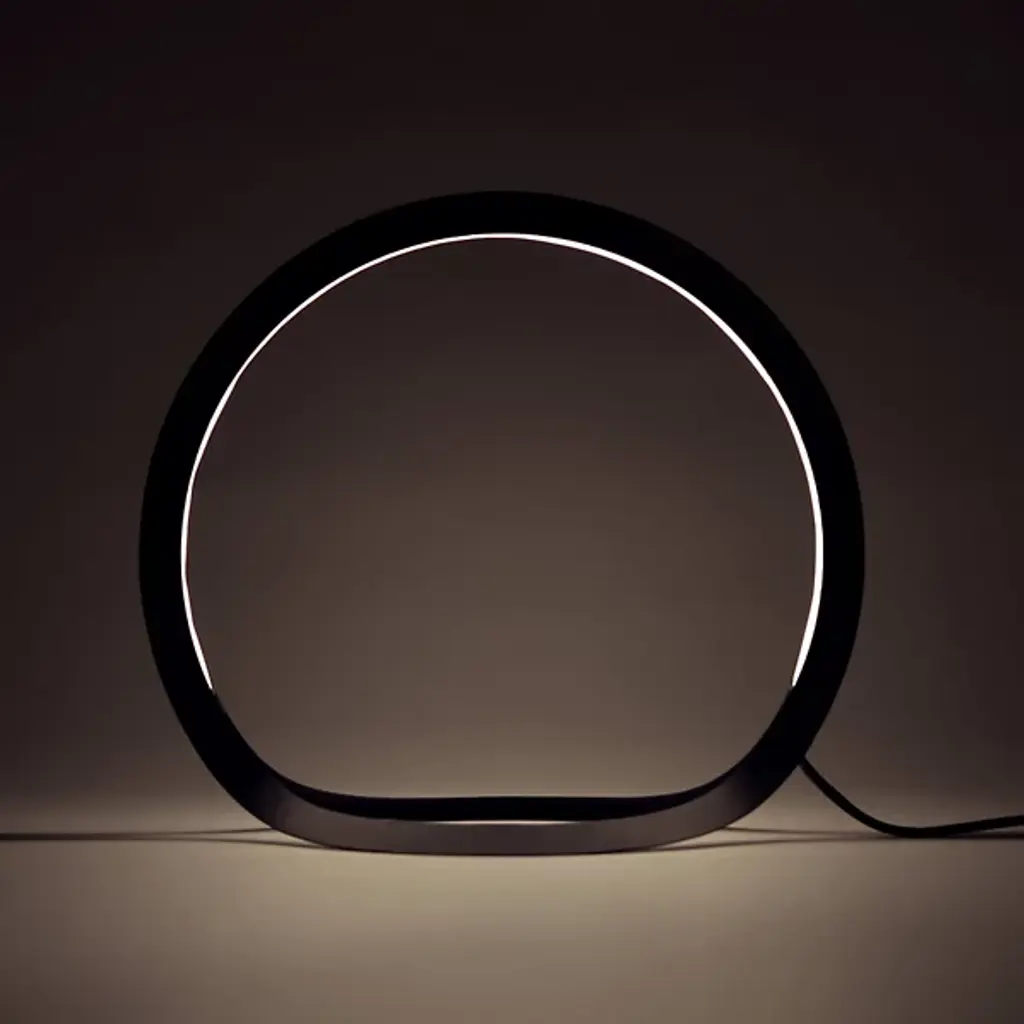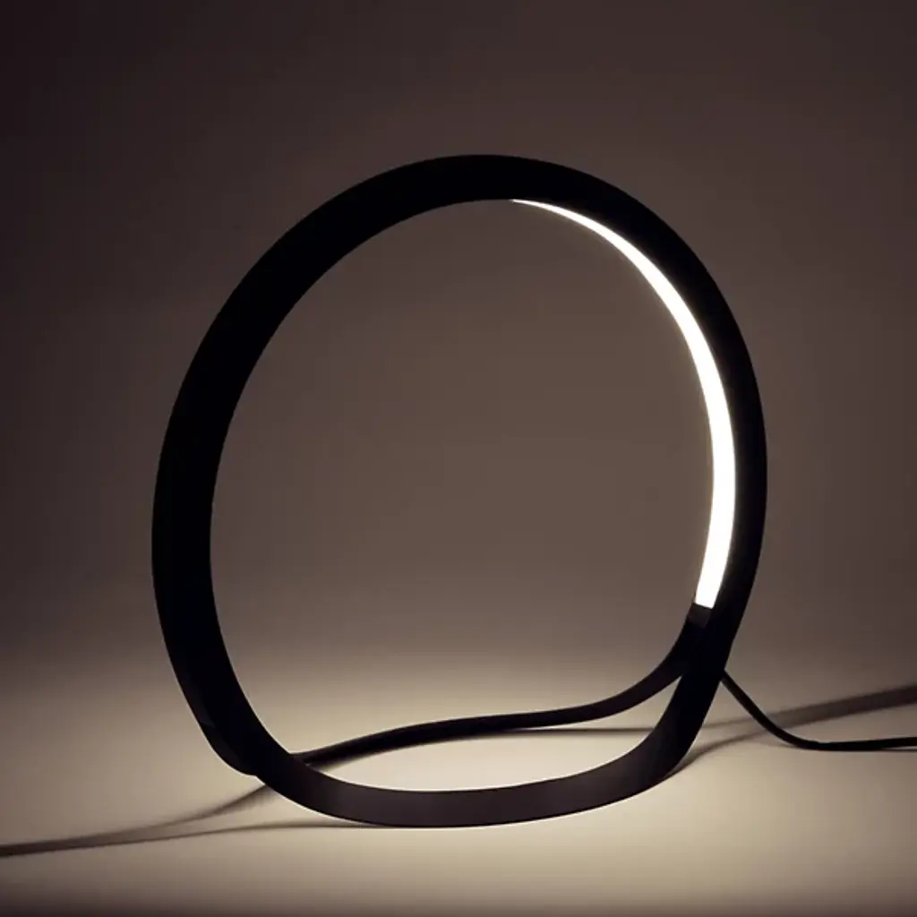 The HOOP LED Table Lamp from Y.S.M. was designed by SALTCO (Kenji Fukushima). As its name suggests, it takes on a circular shape for a minimalistic appearance. The table lamp comprises aluminum and steel for durability and features a leg stand connected to a refined acrylic shade that’s illuminated by an integrated LED. A convenient cord dimmer lets you easily adjust the brightness level. Made in Japan, this lamp combines contemporary and ultra-modern styles.