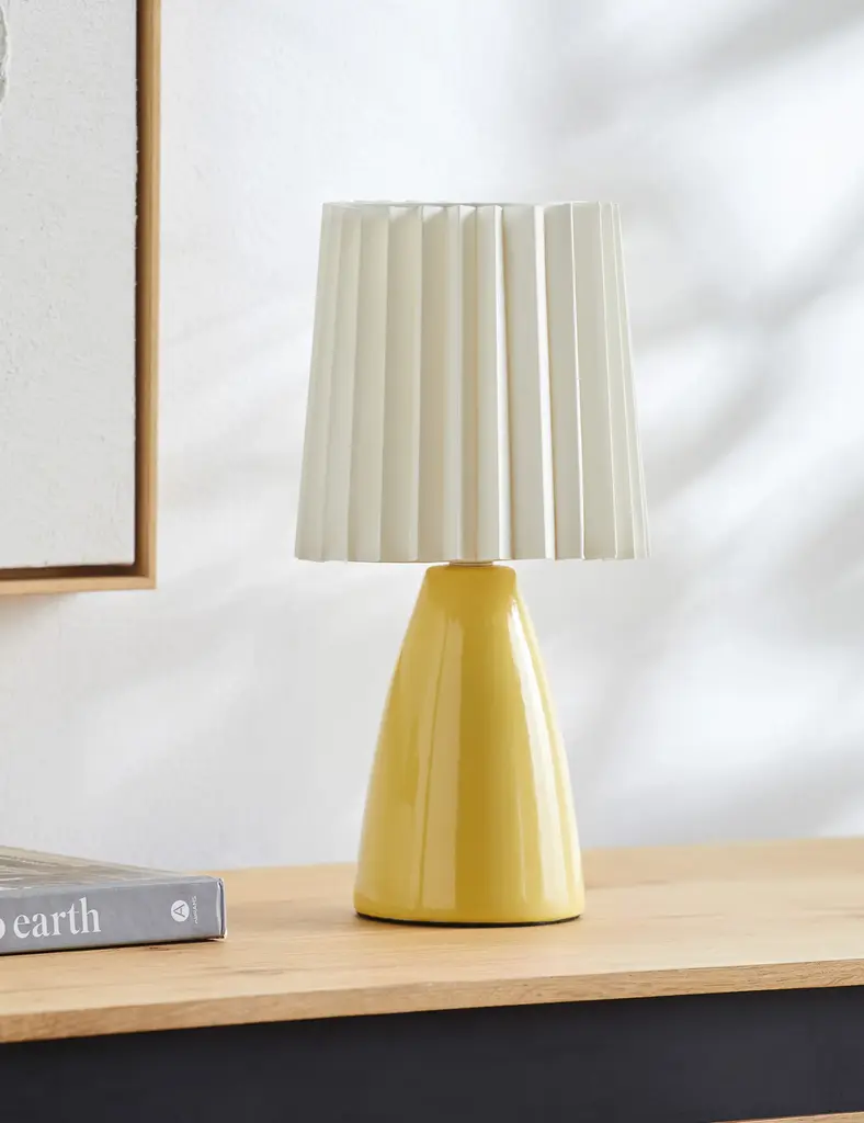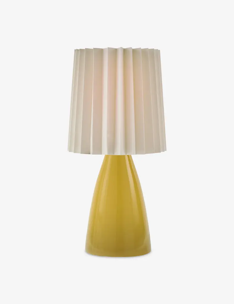 With its sleek base in a gloss finish and pleated linen shade, the Hooper lamp is a tabletop showstopper. We love its minimalist design and bold impact for a modern edit. This compact table lamp is the perfect size to fit onto a nightstand or side table.