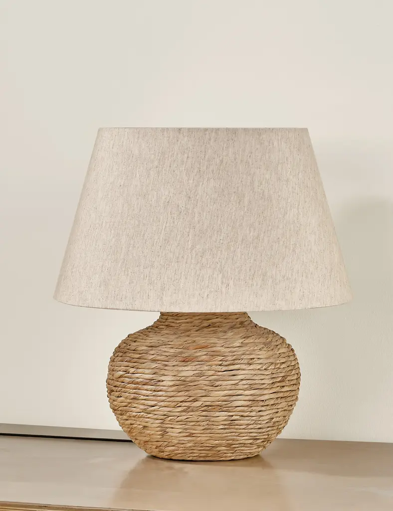 The Hope jute table lamp is the perfect addition to any boho-chic inspired space. With its unique natural jute shade and base, this lamp adds a stylish and eye-catching touch to any room. The warm glow of the light is sure to bring a cozy and inviting atmosphere to your living room, bedroom, or office. With its one-of-a-kind style and two size options, this lamp will add a touch of charm to any interior design.
