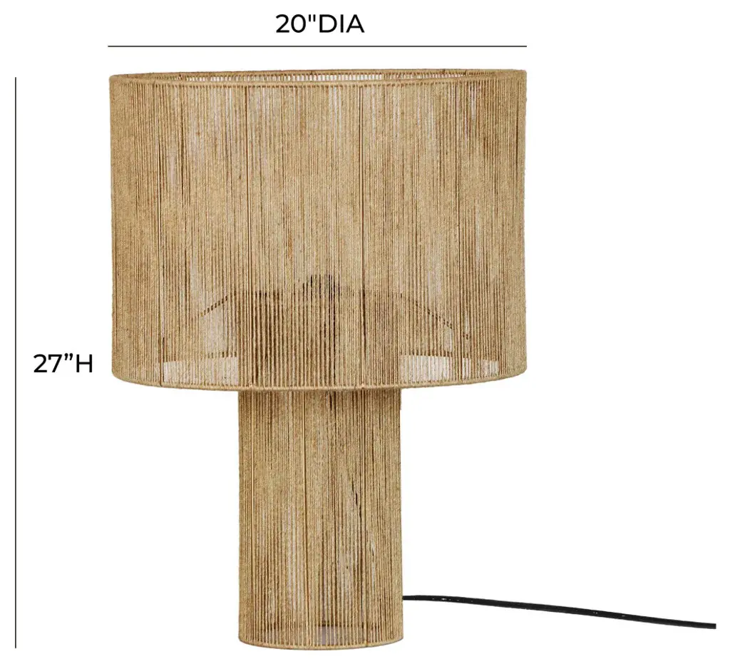 The Hope jute table lamp is the perfect addition to any boho-chic inspired space. With its unique natural jute shade and base, this lamp adds a stylish and eye-catching touch to any room. The warm glow of the light is sure to bring a cozy and inviting atmosphere to your living room, bedroom, or office. With its one-of-a-kind style and two size options, this lamp will add a touch of charm to any interior design.Requires 1 LED Type A bulb with E26 Base - Not includedMax Wattage: 40UL Listed