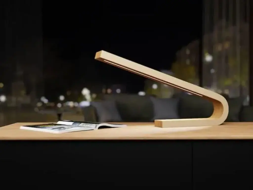 Sunset inspired table lamp, which gives a romantic touch to your thoughts.Timeless design, unique technical execution that gives the luminaire a unique striped line.Made of natural birch plywood, handcrafts, oilwaxed with German quality oil Auro 108, non-toxic, natural ingredients.LED battery life of 50 000h or 91 years. (average usage 1.5h / day). Comfortableremote control with 0-100% dimming function. Safe 24V low voltage for family members of all ages. Warranty for 7 years. LED W: 8,65. Kelvin: 3000K.
